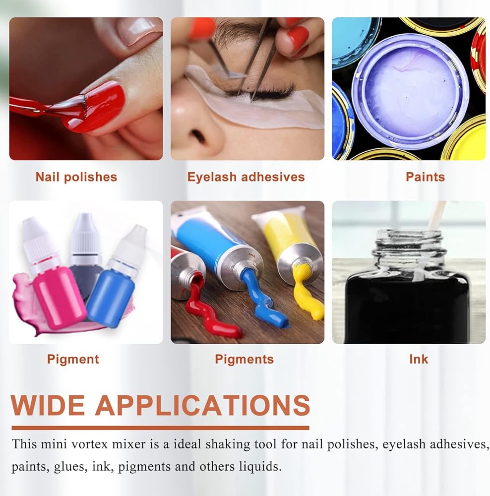 【استخدامات واسعة】 يعد هذا الخلاط الدوامي أداة اهتزاز مثالية لطلاء الأظافر والدهانات الرقيقة مثل دهانات اللاكيه والدهانات الأكريليك والمواد اللاصقة للرموش والغراء والحبر والأصباغ وأنابيب الاختبار وغيرها. كلما كانت السوائل أرق، كلما كان جهد الخلط أفضل.