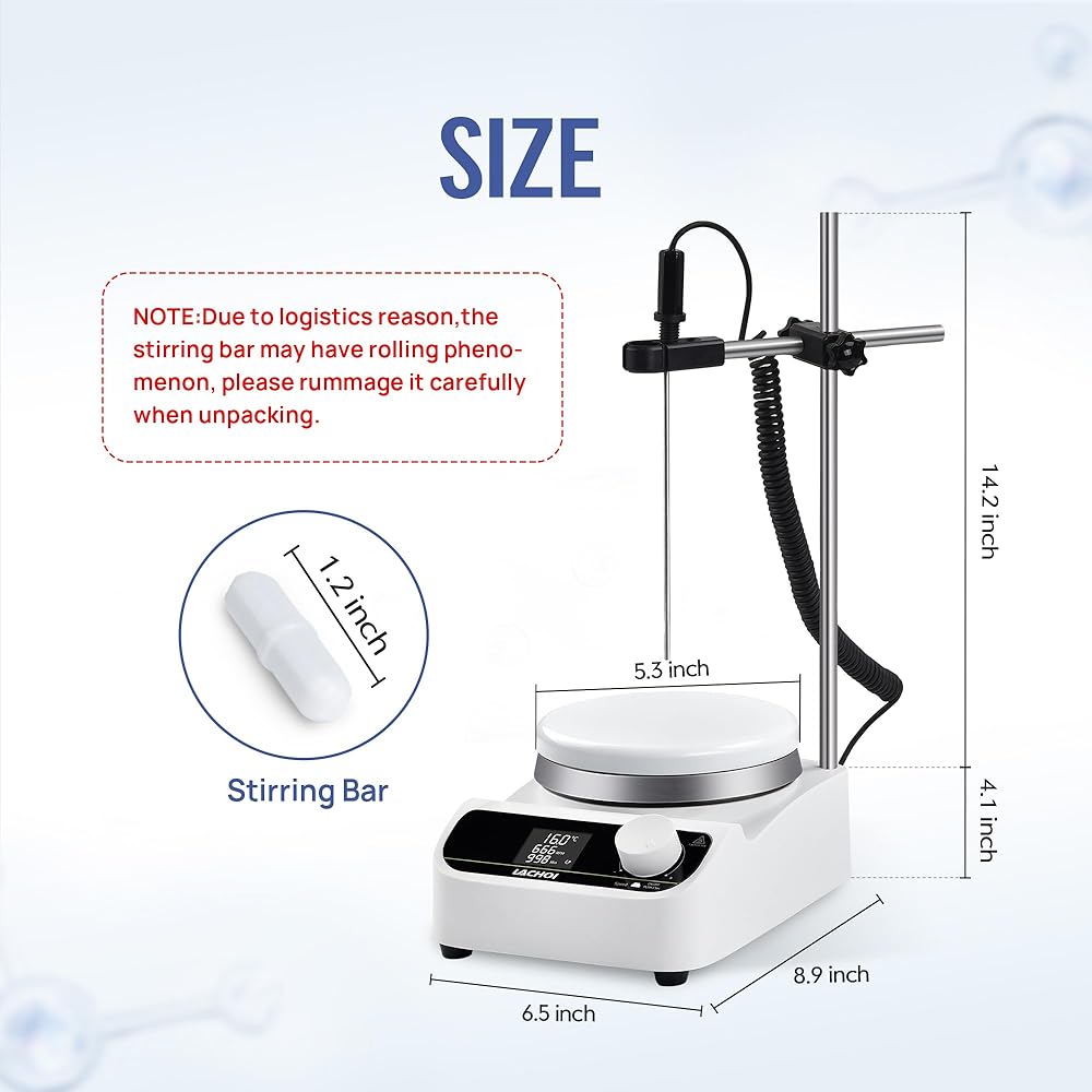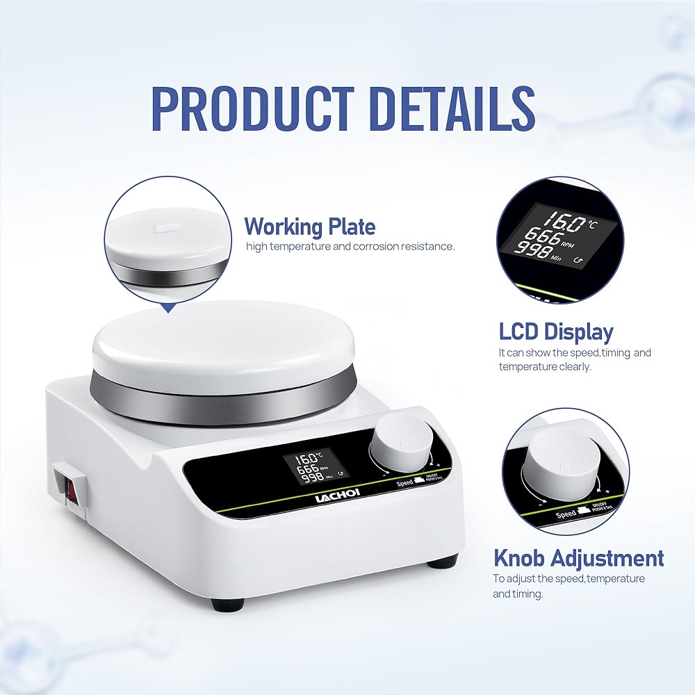 ☑ شاشة LCD: يتميز الخلاط المغناطيسي بإعدادات أكثر دقة للسرعة والتوقيت من خلال شاشة LCD التي يمكن أن تظهر السرعة والتوقيت بوضوح. كما أن قراءات الخلاط المغناطيسي دقيقة وبديهية يمكنها تسجيل البيانات بشكل مريح.