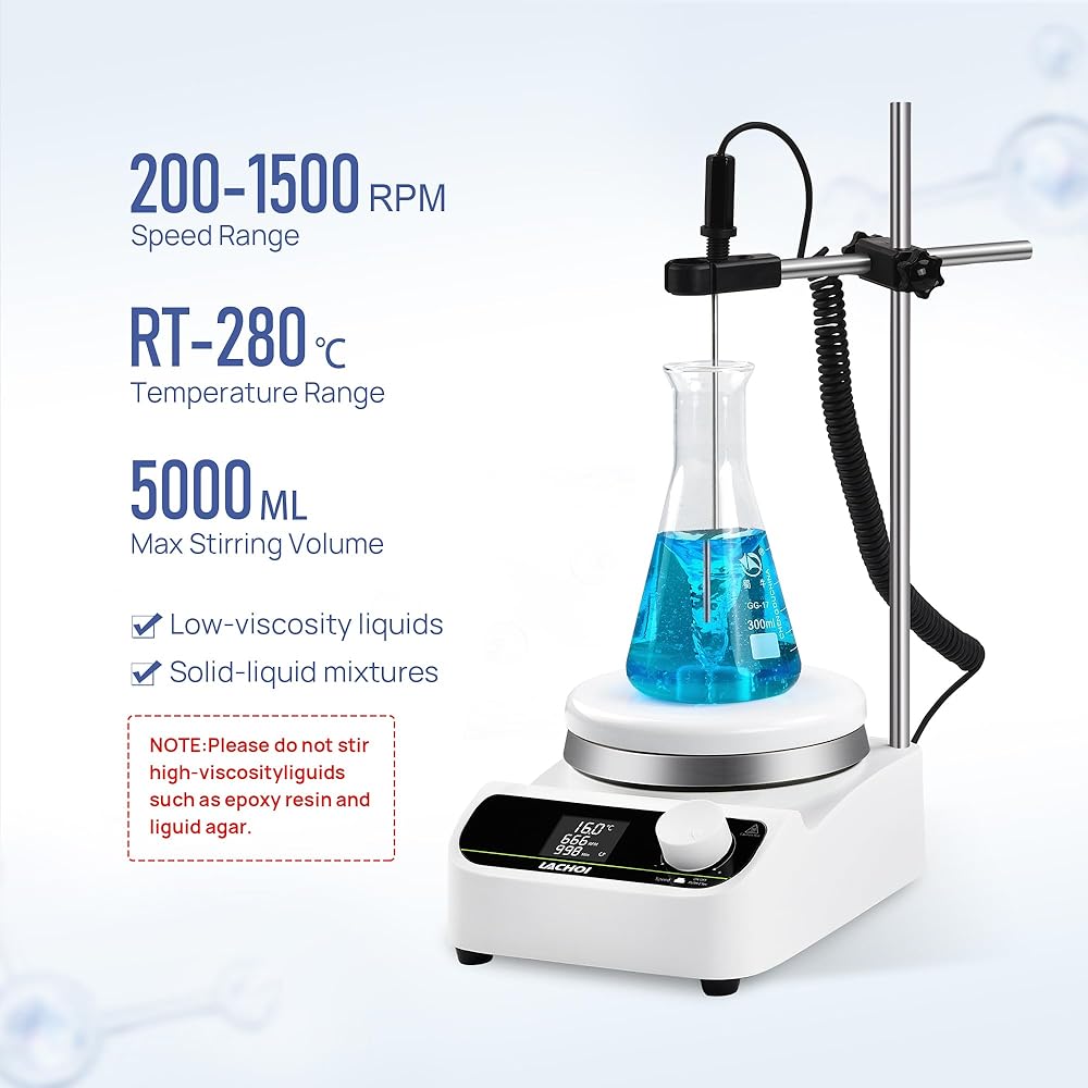 محرك مغناطيسي للوحة تسخين LCD Lab 1500 دورة في الدقيقة بحد أقصى 280 درجة مئوية 5.3 بوصة محرك كهربائي بلوحة تسخين بحد أقصى 5000 مل خلاط مغناطيسي مع مستشعر مسبار درجة الحرارة