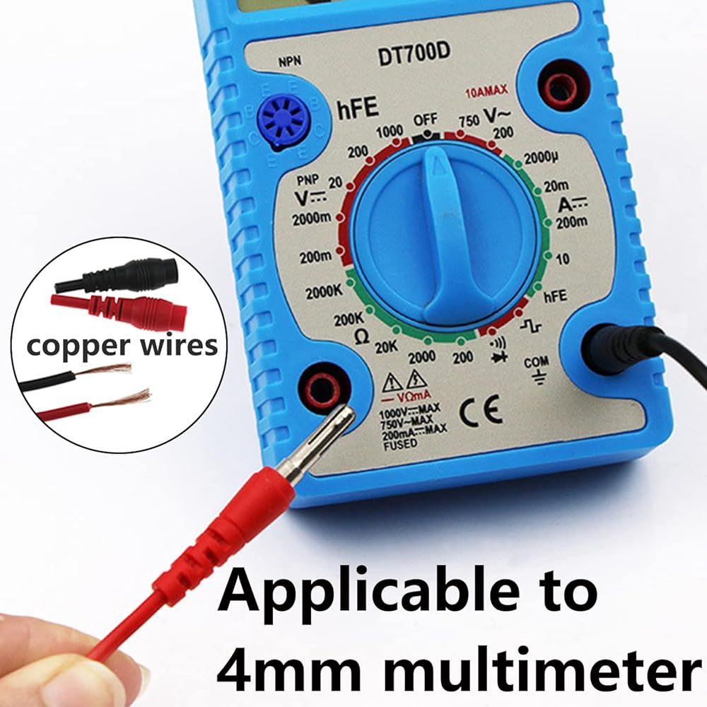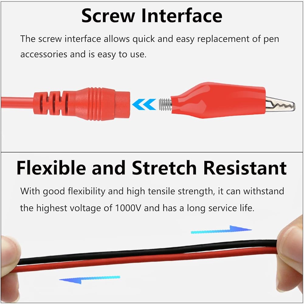 مجسات اختبار رقمية متعددة ومجموعة سلاسل الاختبار - يتكون القلب الداخلي لمقابس الموز لسلاسل عدادات متعددة الوظائف مع مجموعة مشابك التمساح من سلك نحاسي خالٍ من الأكسجين، مما يجعل مجموعة سلاسل الاختبار الكهربائية تتمتع بقوة عالية، وموصلية عالية، ومقاومة للانحناء ومقاومة منخفضة وعمر خدمة طويل. كلا طرفي أسلاك الاختبار عبارة عن مقابس ملولبة، والتي يمكن استخدامها بمرونة مع الملحقات. يتم توصيل كابل أسلاك التوصيل بمسابير رقمية متعددة.