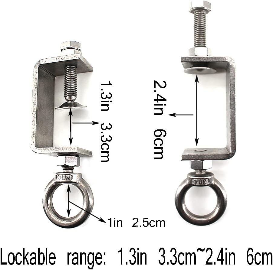 * يمكن تثبيت الضواغط اللولبية في نطاق 1.33 بوصة ~ 2.4 بوصة. تحتوي اللوحة السفلية على فتحة لولبية بقطر M10، يمكنك تثبيت الحلقة المصنوعة من الفولاذ المقاوم للصدأ المتوفرة في العبوة
