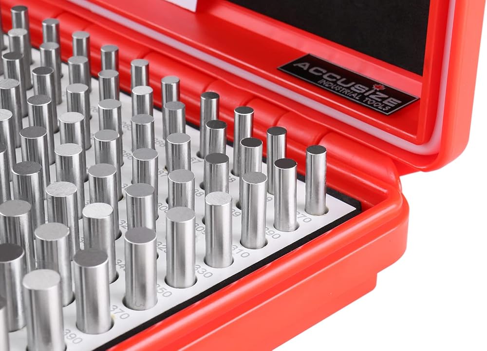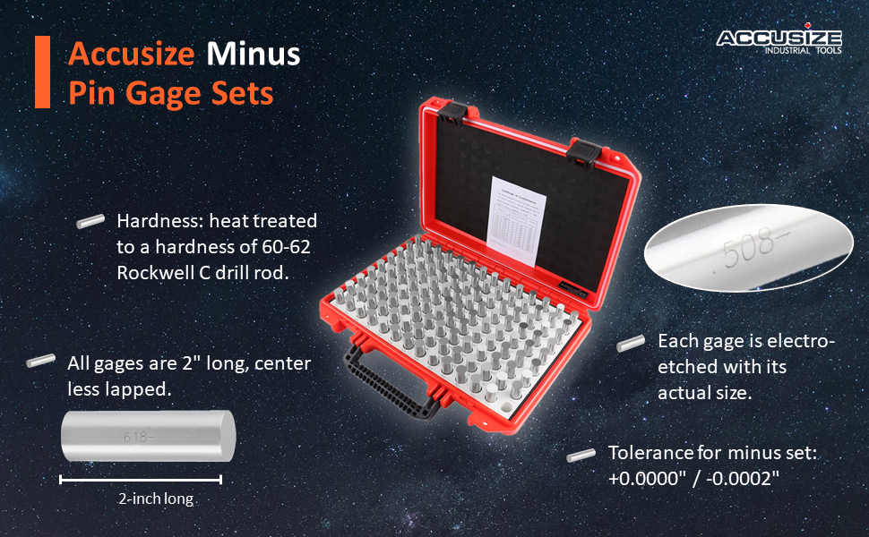 أدوات Accusize الصناعية - مجموعة قياس دبوس ZZ ذات 190 قطعة دقيقة، من 0.061 بوصة إلى 0.250 بوصة، طول 2 بوصة، معالجة بالحرارة، 60-62 RC، مع علبة ألومنيوم، M1(-) A
