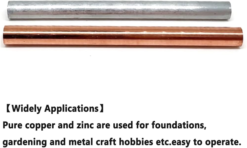 • 【الحزمة المثالية】 تشتمل العبوة على قضيب نحاسي نقي وقضيب زنك نقي، وقضبان نحاس وزنك مطورة لمعالجة أدواتك المعدنية، مما يسمح لك بالاستمتاع بمتعة DIY بشكل كبير.