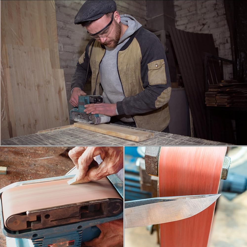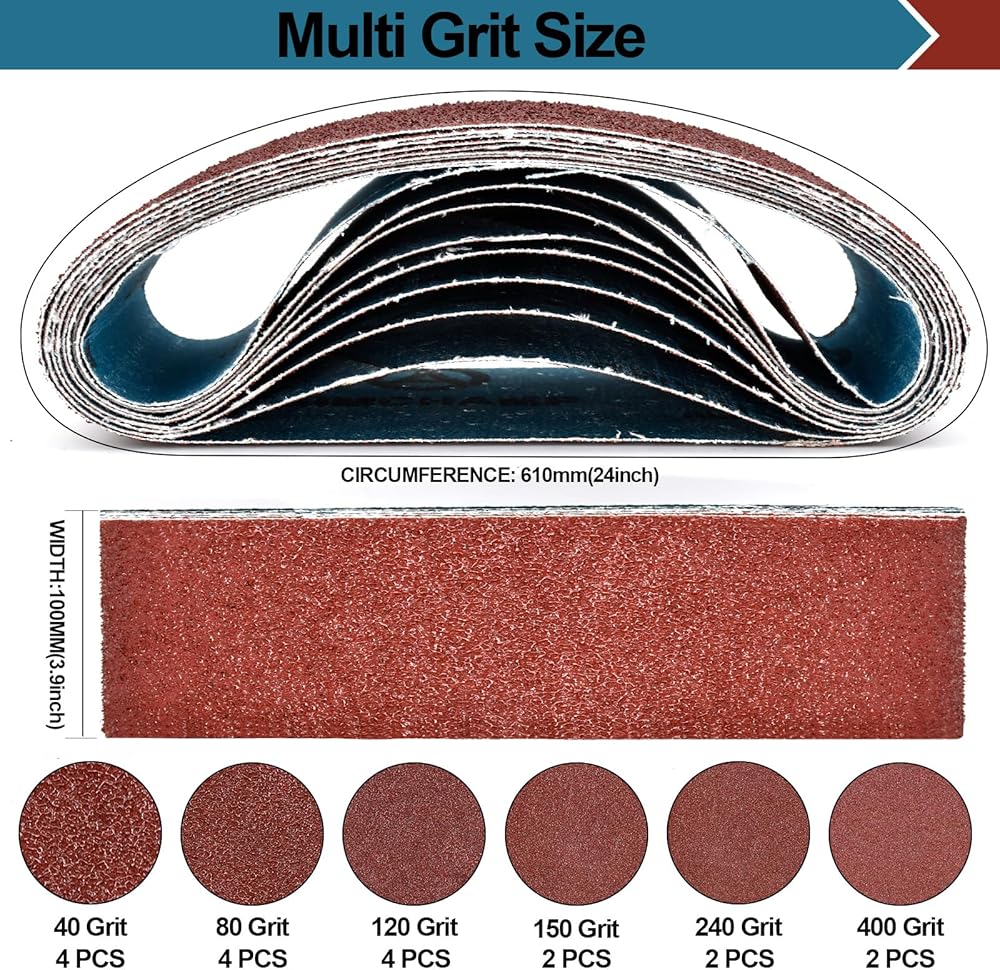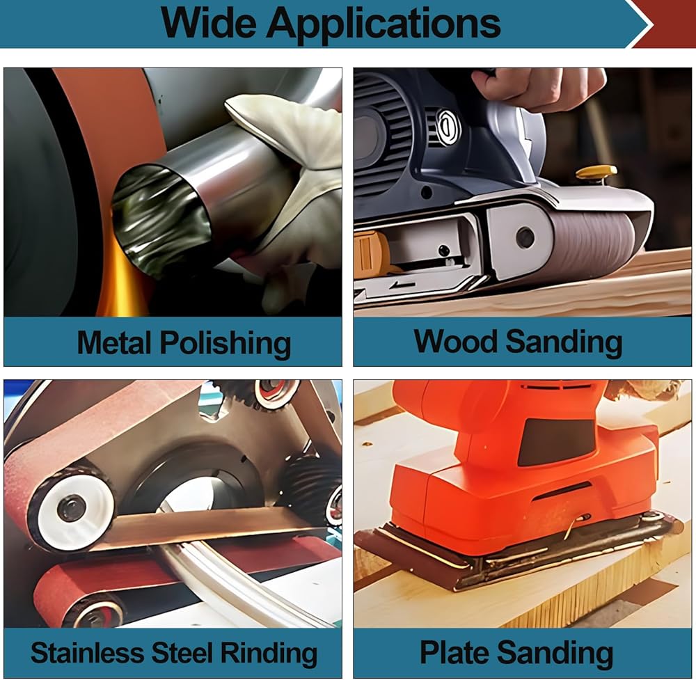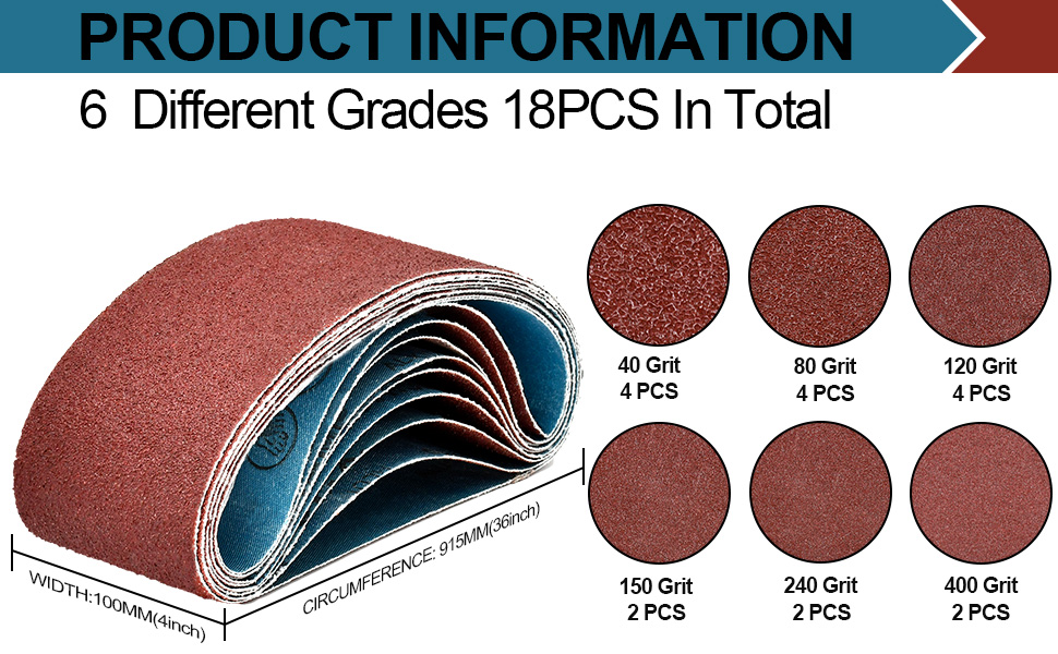 【دليل اختيار الحبيبات】: حزام الصنفرة 60 حبيبة خشن إلى حد ما - صنفرة وتقشير ثقيل؛ ورق صنفرة بحبيبات 80-150 متوسط إلى حد ما - إزالة العيوب الصغيرة؛ 240-400 حبيبة مما يوفر لمسة نهائية ناعمة للغاية.