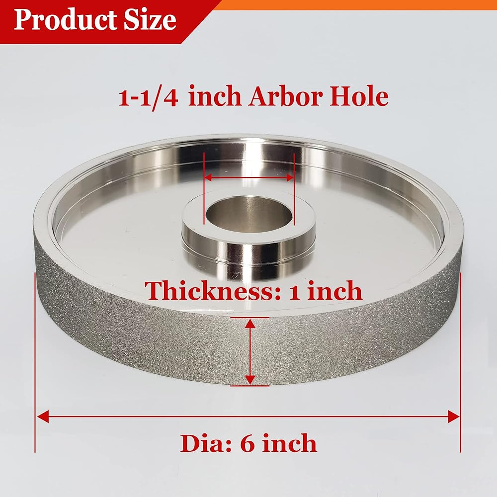 【المقاس】 القطر: 6 بوصة، فتحة الشجرة: 1-1/4 بوصة، السُمك: 1 بوصة، الحبيبة: #80.
