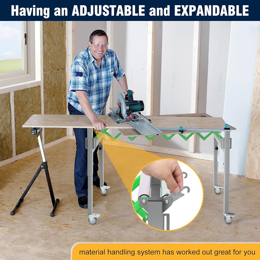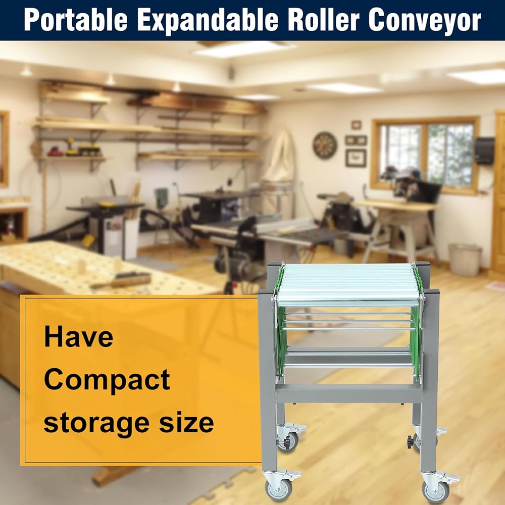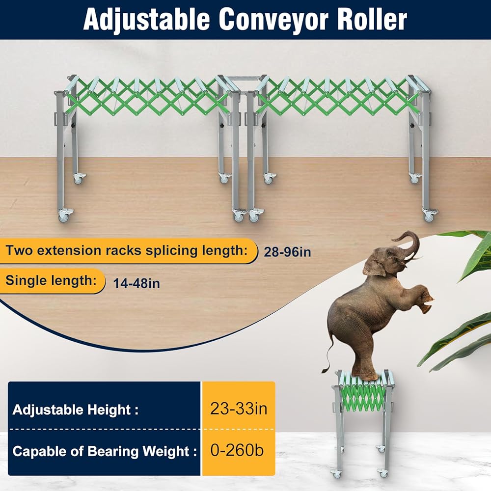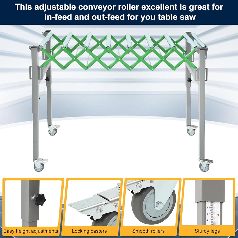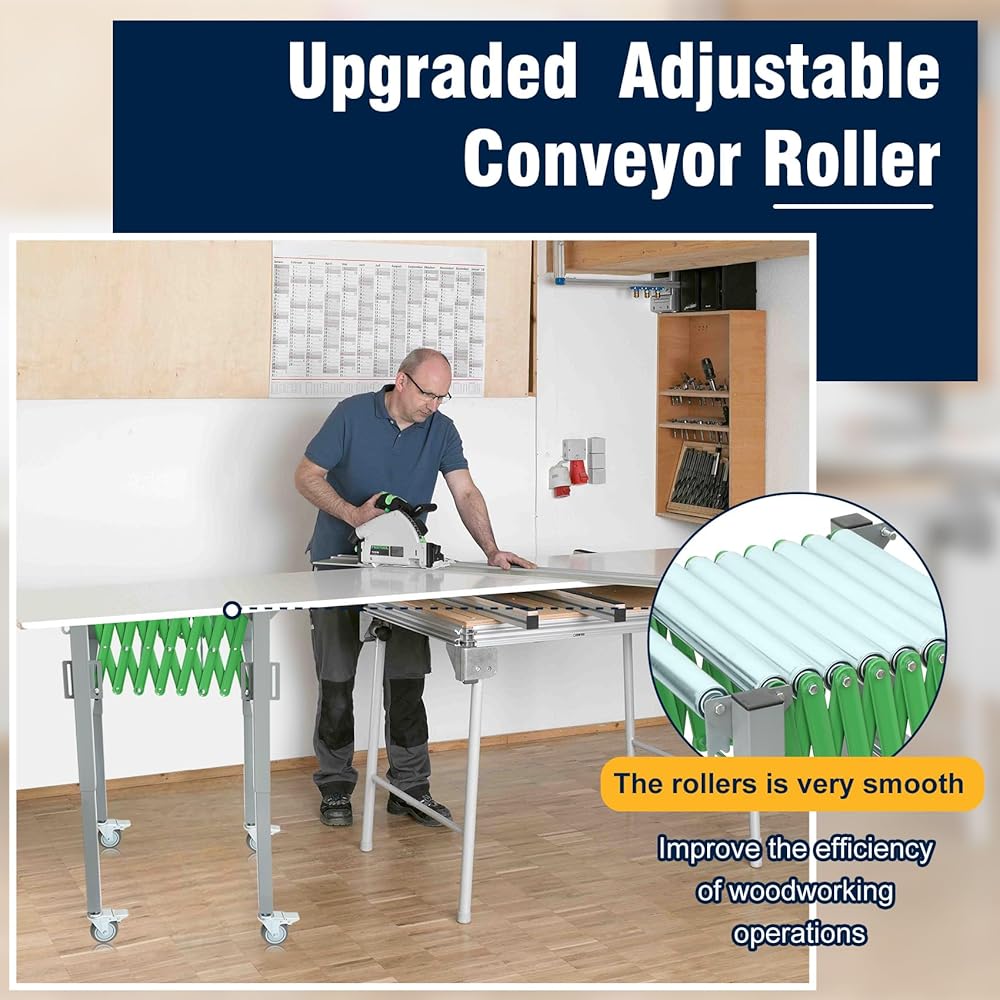 【Adjustable Height】Our portable conveyor roller system has an adjustable height of 23-33 inches and is equipped with clear and wear-resistant scale indicators. When paired with a table saw, it is convenient to use and saves you time and manpower