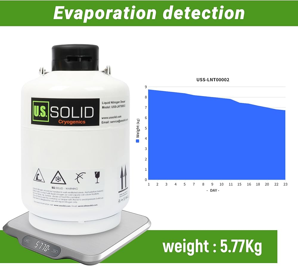 معدل التبخر: نقوم باختبار معدل التبخر لخزانات النيتروجين السائل لدينا عن طريق ملئها بالكامل بالنيتروجين السائل وتتبع معدل التبخر