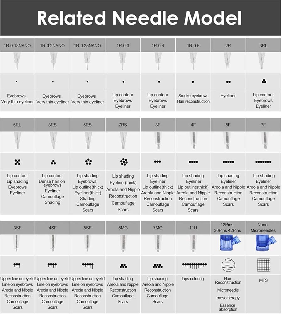 1R--0.2 مم: إبر خرطوشة النانو. يناسب الشعر الرقيق على الحاجب، وأرفع كحل.