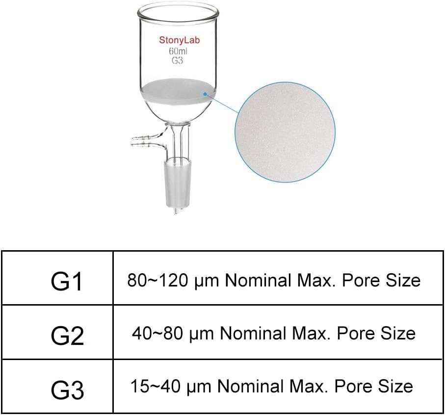 • G3 15 ~ 40 ميكرومتر الحد الأقصى الاسمي. حجم المسام متوافق مع دوائر ورق الترشيح النوعية/الكمية من StonyLab بقطر 75 مم