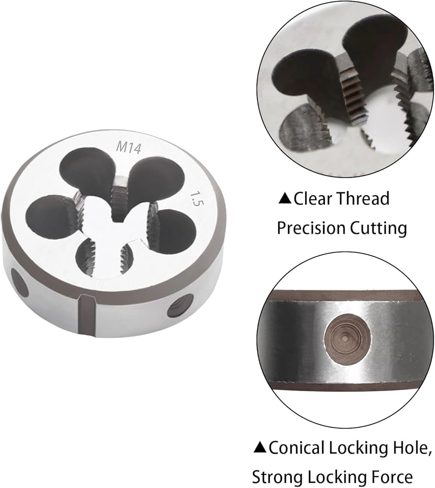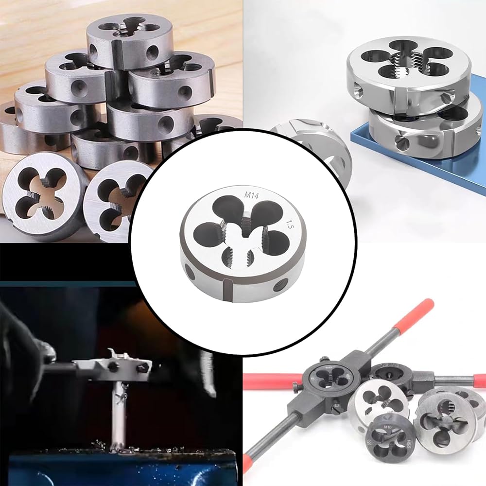 تطبيق واسع - قم بإنشاء خيوط جديدة أو إصلاح الخيوط التالفة على معظم المعادن مثل الفولاذ الكربوني والحديد الزهر والألومنيوم والنحاس والنحاس والفولاذ المقاوم للصدأ باستخدام مجموعة الصنبور والقالب هذه. نصيحة: لكل دورة كاملة للأمام، تأكد من تشغيل الصنبور نصف خلفي لمنع الصنبور من التلف. أضف مواد التشحيم المناسبة أثناء عملية قطع الخيط.
