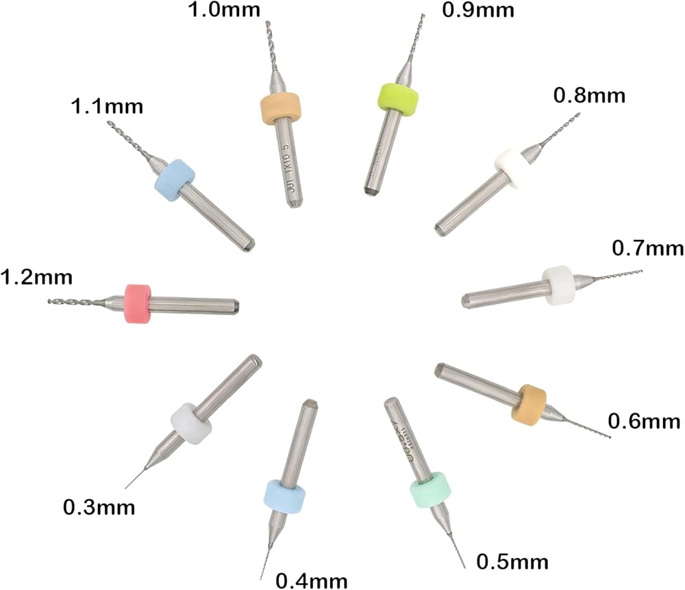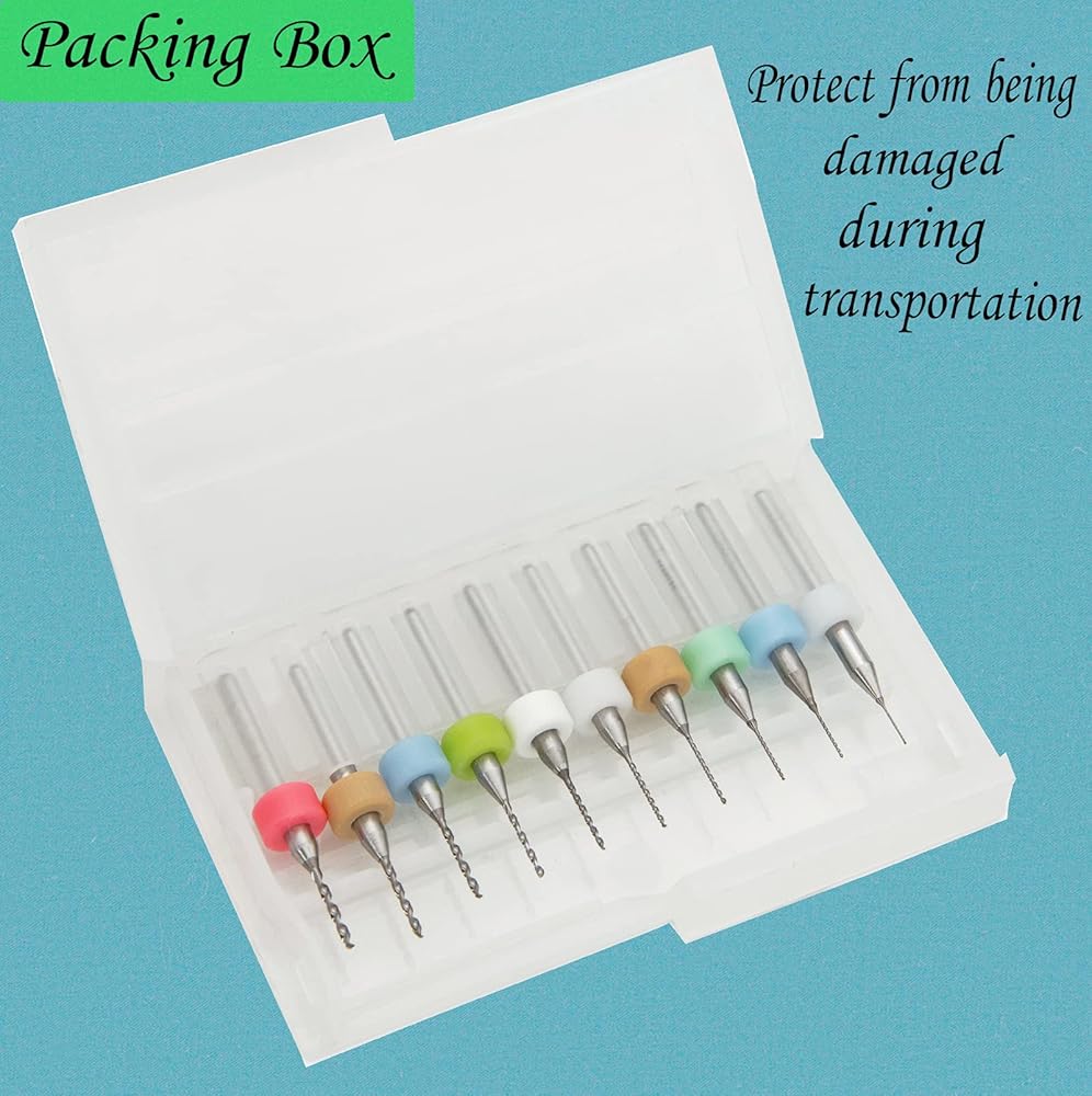 Each box contains 10 different Drill bits: 0.3mm+0.4mm+0.5mm+0.6mm+0.7mm+0.8mm+0.9mm+1.0mm+1.1mm+1.2mm