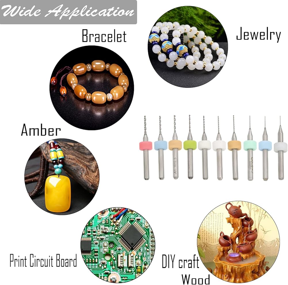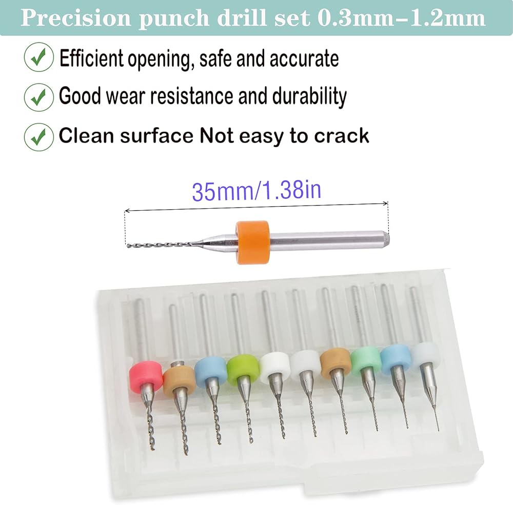 PCB Drill Bits Set are great for punching at printed circuit boards, 3D Printer Nozzle Cleaning, CNC engraving plexiglass, Amber beeswax, bakelite, jewelery, metal plastic and other precision drilling.