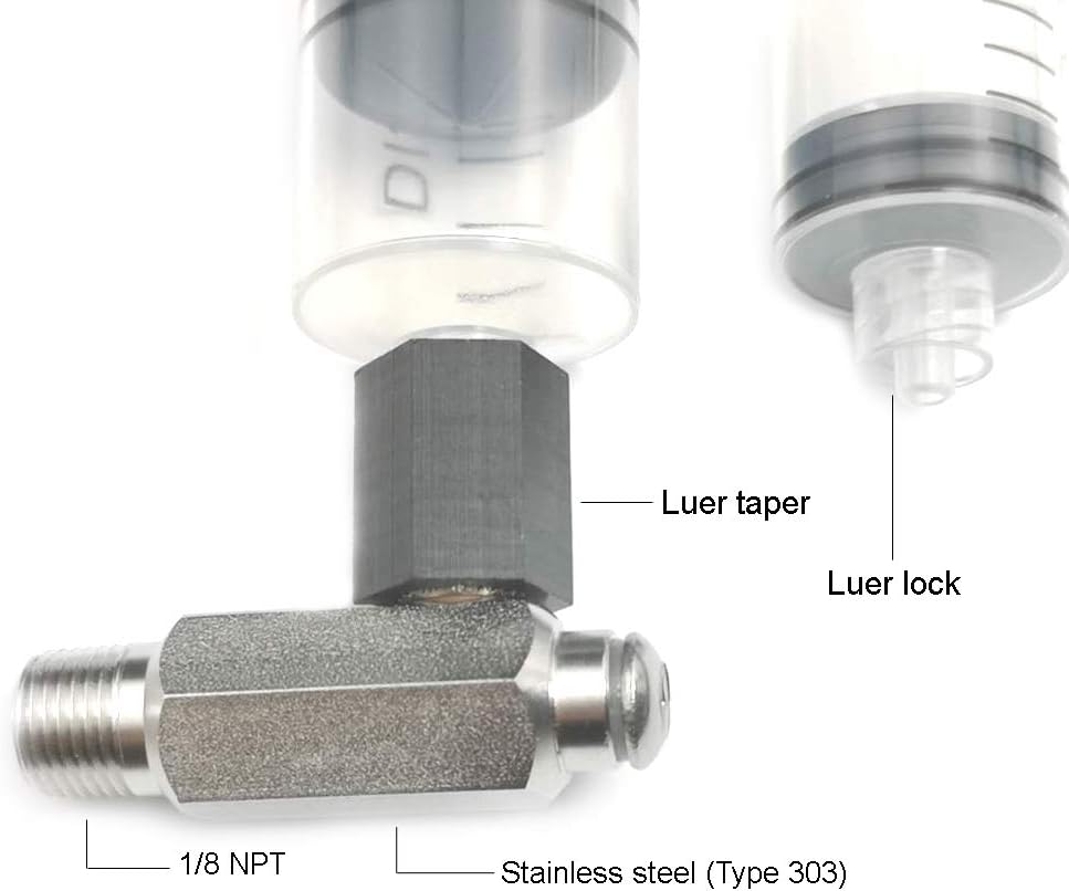 Metal Luer Syringe Fitting to 1/8" male thread. Includes 1 Unit.