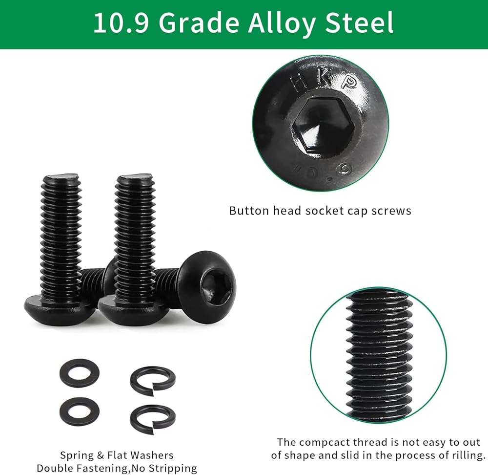 【سبائك فولاذية عالية الجودة بدرجة 10.9】مجموعة صواميل البراغي مصنوعة من سبائك فولاذية عالية الجودة بدرجة 10.9. والتي تتميز بالقوة وتوفر مقاومة جيدة للتآكل في البيئات السيئة مثل درجات الحرارة المرتفعة والطقس البارد ومناطق الرطوبة العالية.