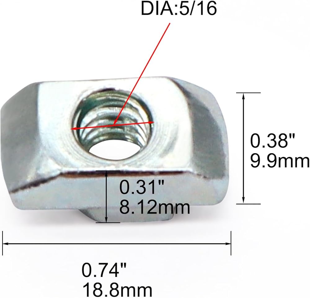 45 سلسلة 5/16 بوصة - 18 قطرة فولاذية قياسية ملولبة في صامولة على شكل حرف T، صواميل الأجهزة الملحقة على شكل حرف T لسكة تشكيل بثق الألومنيوم 4545، 20 عبوة