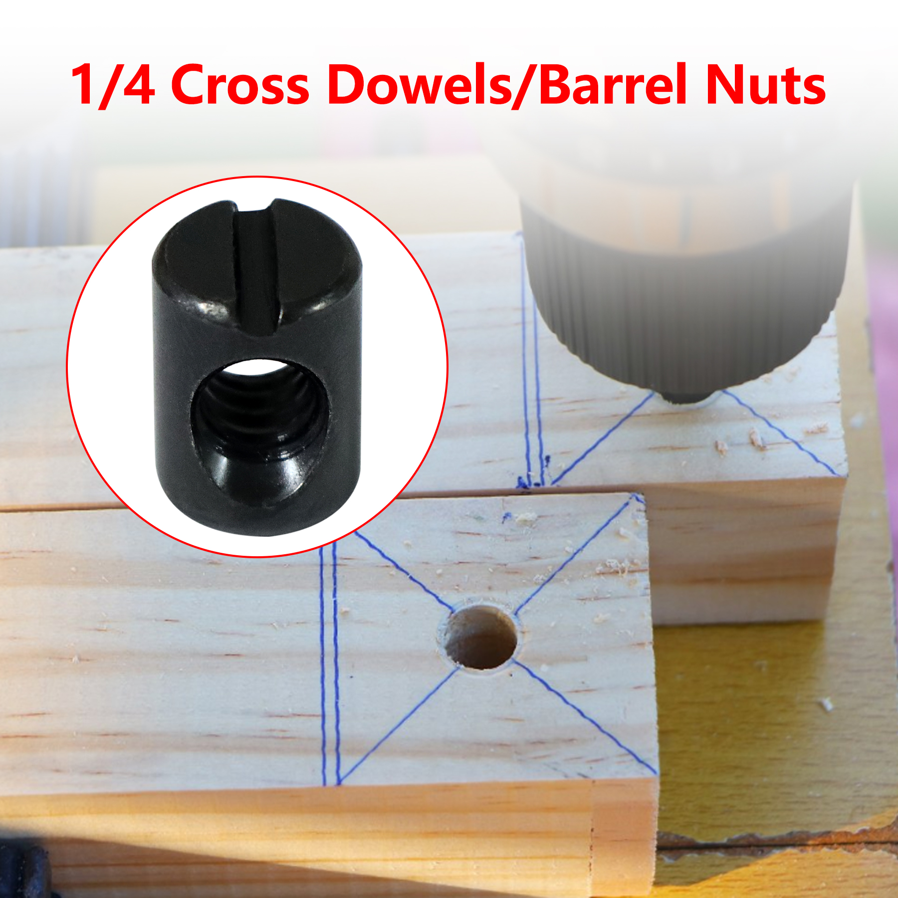 Xadnitu 1/4"-20 صواميل أسطوانية سوداء 10 مم × 16 مم، فولاذ كربوني مع مطرقة وتد متقاطعة من أكسيد أسود، صواميل مشقوقة، استبدال الأجهزة لأثاث أسرة الأطفال الصغار، أسرة الأطفال، سرير فوتون بطابقين (25)