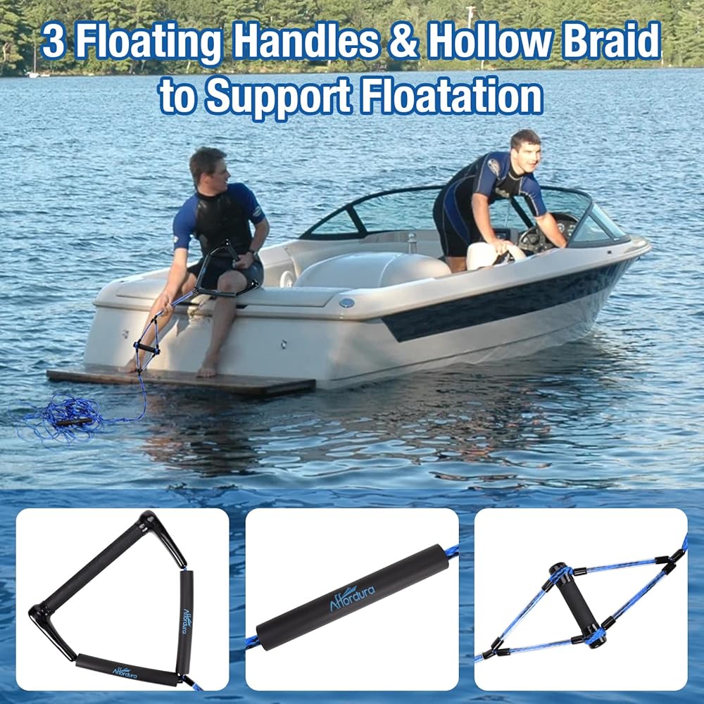 • مقبض عائم - ثلاثة مقابض عائمة متضمنة، مصممة بمقبض EVA وقلم رصاص لدعم الطفو، والحفاظ على حبل لوح الاستيقاظ الخاص بك بعيدًا عن المراوح وتسهيل استرجاعه.