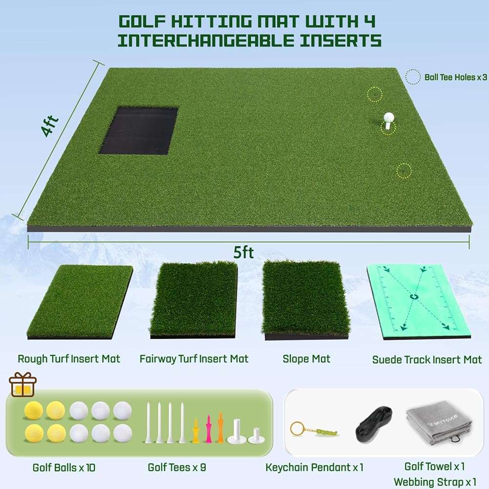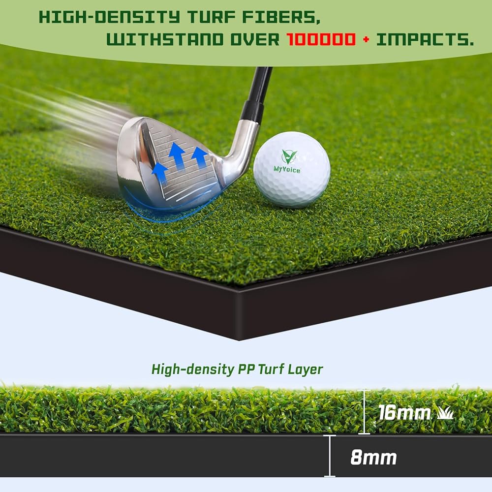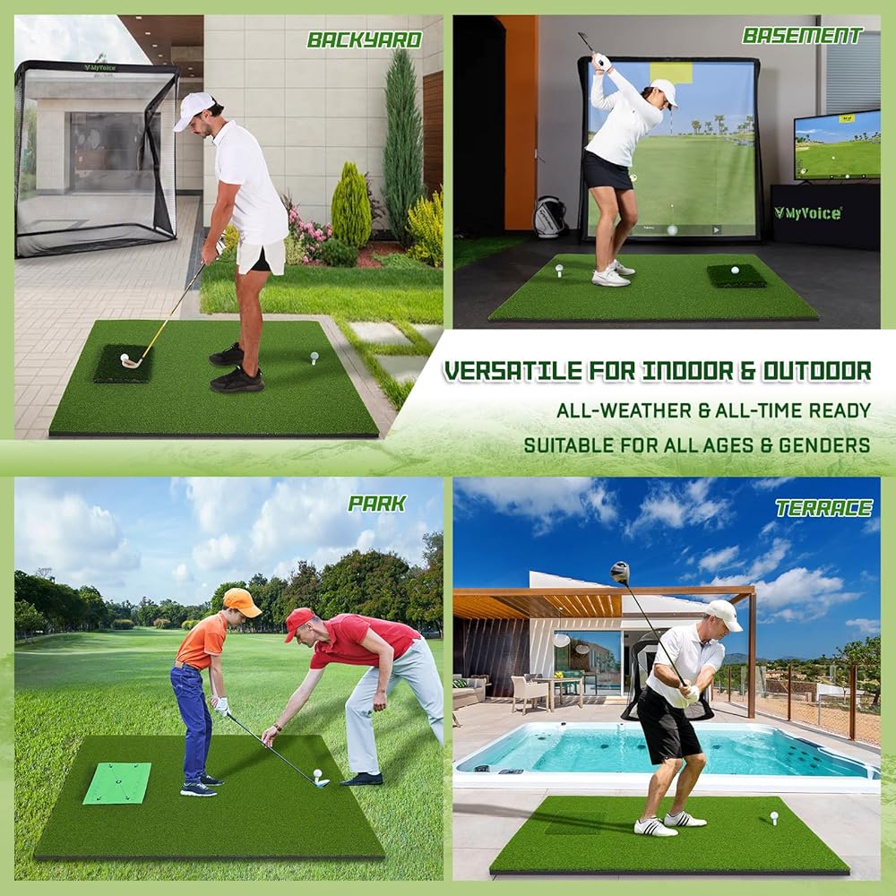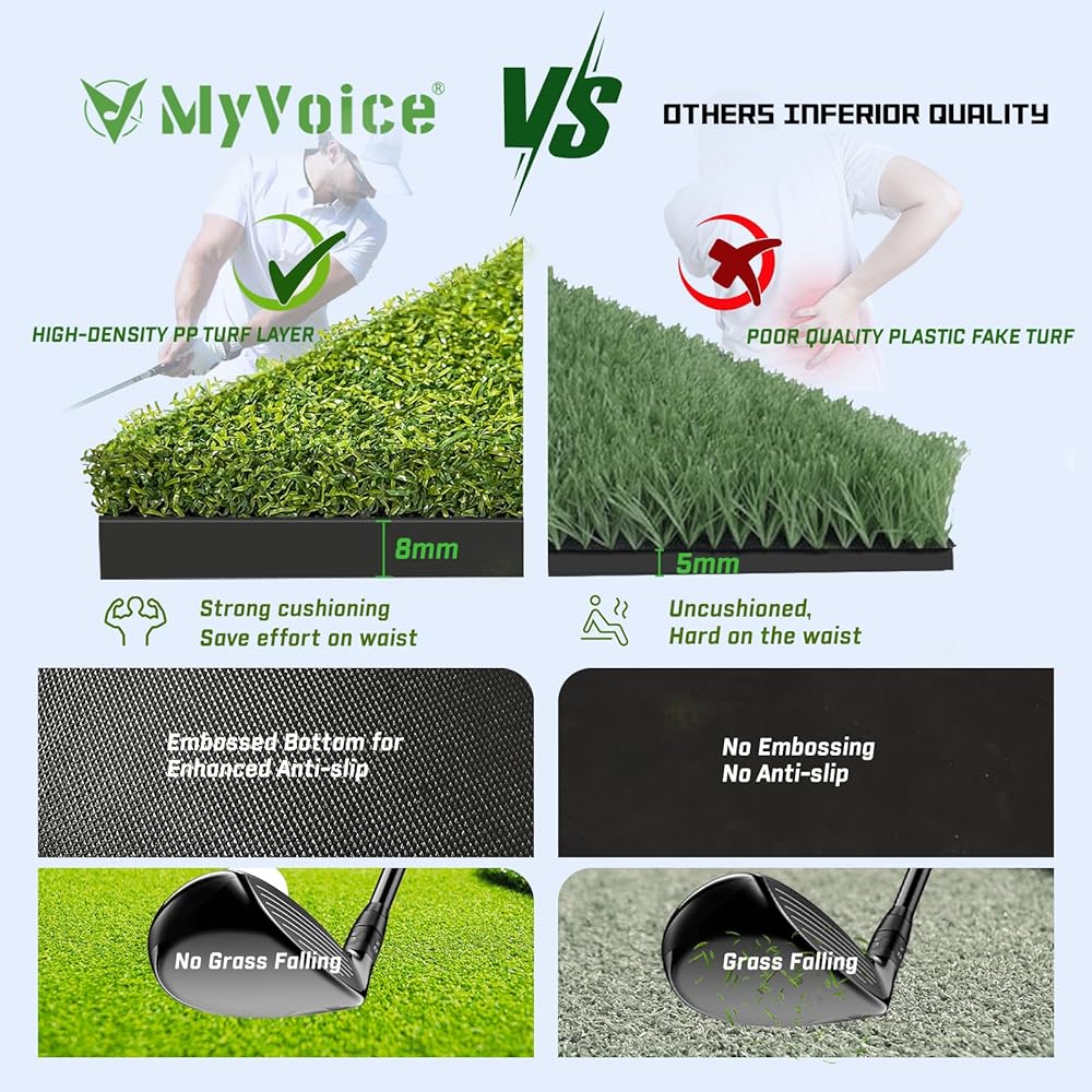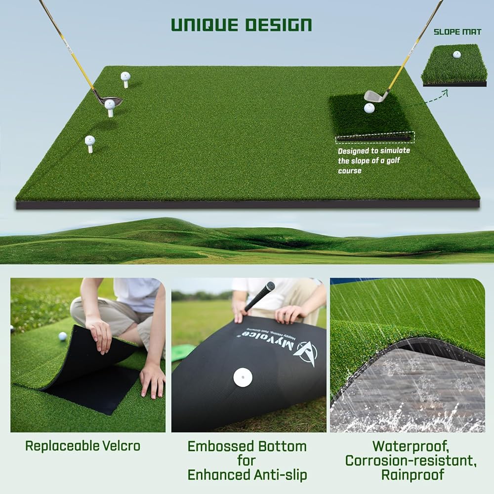 • حل سجادات ضرب الجولف الديناميكية مع وظيفة مستقلة: ارفع مهاراتك مع سجادة جولف MyVoice مقاس 5 × 4 أقدام - سجادة عشب بسمك إجمالي 1.2 بوصة وحصائر مستقلة قابلة للتبديل بشكل فريد. سواء كنت تمارس سجادات الجولف في الداخل أو الخارج، فإن كل سجادة إدراج تعمل بمثابة سجادة ضرب جولف مستقلة. صُممت سجادة تدريب عشب الجولف هذه خصيصًا للاعبي الجولف الذين يستخدمون اليد اليسرى واليمنى، وتوفر حلاً شاملاً لإتقان التأرجح.
