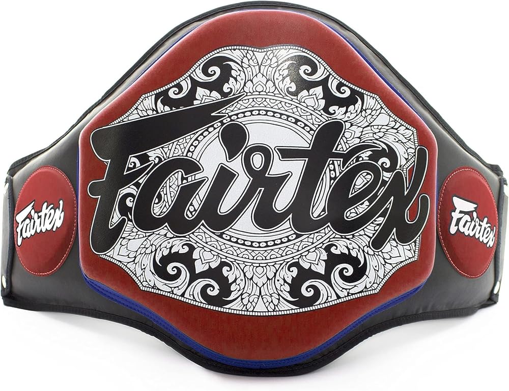 Fairtex Thai training belly pad offers coaching complete core protection when teaching the portfolio of kicks.