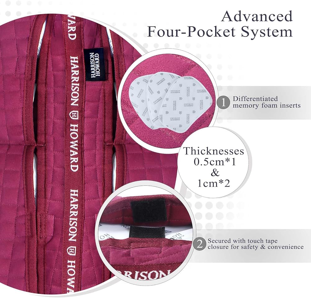 نظام متطور بأربعة جيوب: يوفر تخصيصًا لا مثيل له مع أربعة جيوب موضوعة بشكل استراتيجي، مما يسمح بتعديل دقيق لسمك الوسادة ومستوى الدعم وفقًا لتشريح الحصان واحتياجات الفارس.
