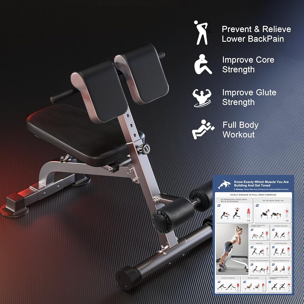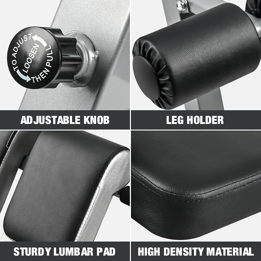 【تقليل ومنع آلام أسفل الظهر】: قومي بفرد وضعيتك واعتني بألم أسفل الظهر مع تقويتها بسهولة لمنع الإصابات المستقبلية عن طريق إجراء وصلات الظهر على مقعد تمديد أسفل الظهر.