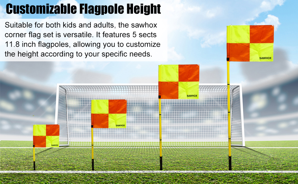 • أعلام زوايا ملعب كرة القدم المحمولة - تتميز أعلام زوايا ملعب كرة القدم SAWHOX بتصميم مريح ومحمول يسمح لك بأخذها إلى أي مكان بسهولة. بفضل سارية العلم القابلة للفصل وحقيبة التخزين المتضمنة، يمكنك حمل سارية العلم بسهولة إلى أي مكان، مما يجعلها بسيطة ومريحة لاحتياجات كرة القدم الخاصة بك.