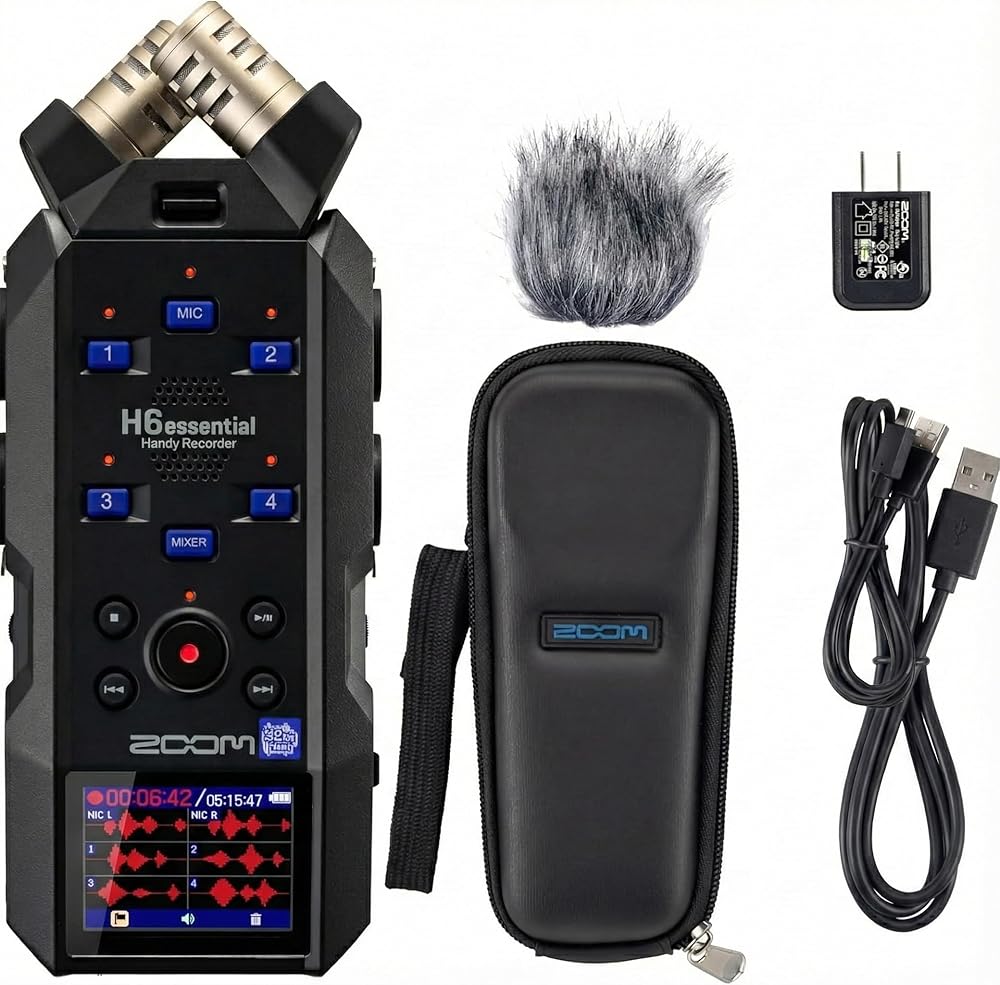 Zoom H6essential with 32-Bit Float, Accessibility, 6-Track Portable Recorder, Stereo Microphones, 4 XLR/TRS Inputs, Records to SD Card, USB Audio Interface, for Musicians, Podcasters, Filmmakers