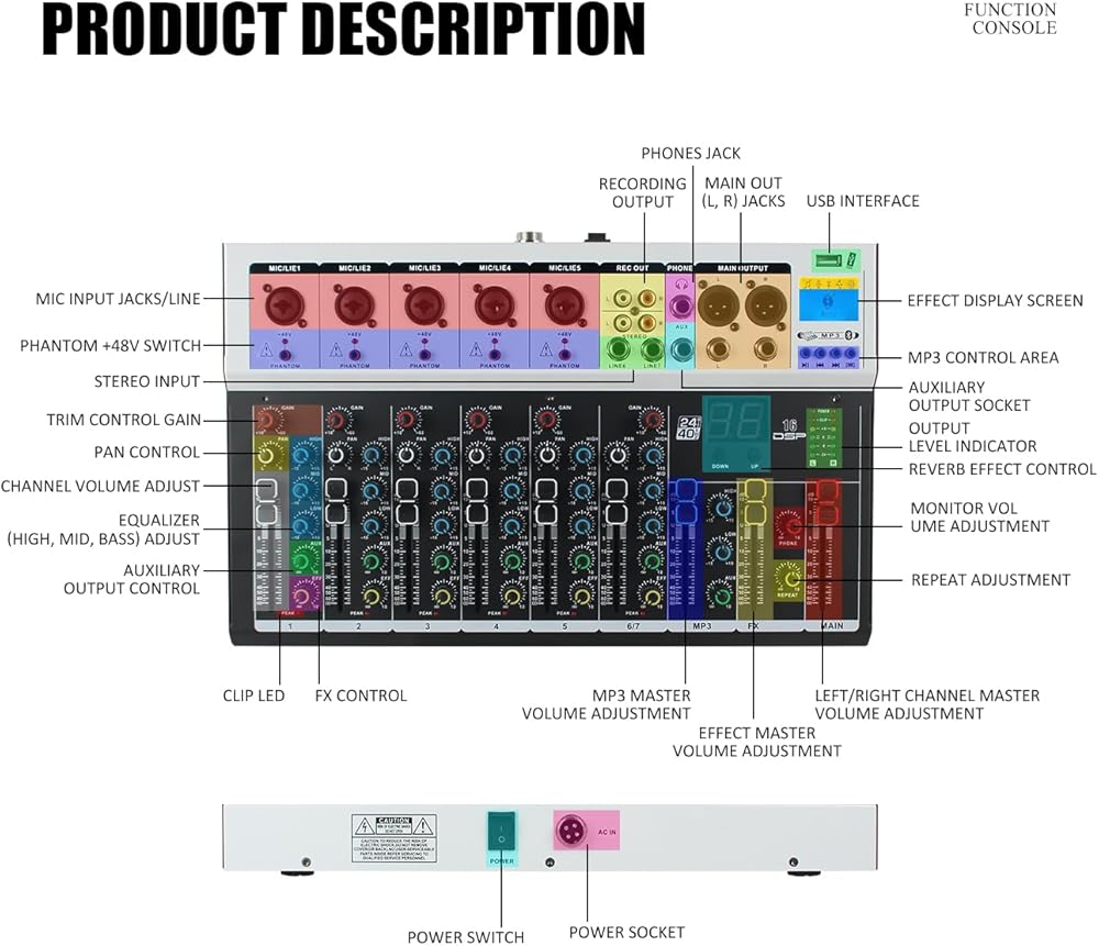 Specification: Brand: Micfuns Model: N7 Mixer Weight: 2.5kg Color: Black Material: Metal Channel Equalization: 7 Band
