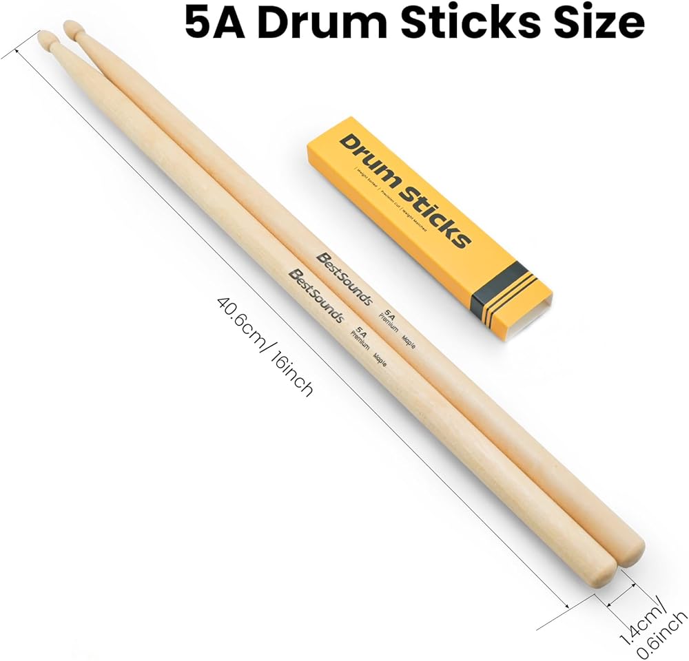 BestSounds 5A drum sticks have a good balance between weight and length. The elliptical sticks, which are full and low sound, Is a large universal drum stick for rock, pop and punk pop.
