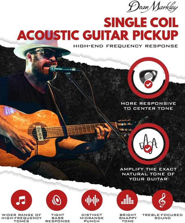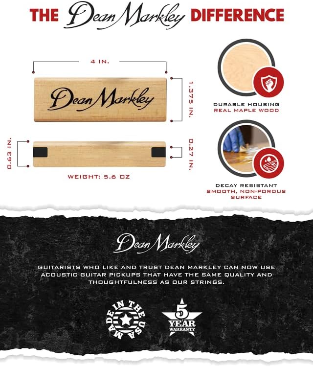 دين ماركلي برو ماج بلس XM جيتار صوتي لاقط ملف واحد، تصميم خشب القيقب الناعم، لمسة نهائية من خشب القيقب النشط، توازن مثالي للسلسلة وضجيج منخفض 15 قدم للقيثارات ذات السلسلة الفولاذية