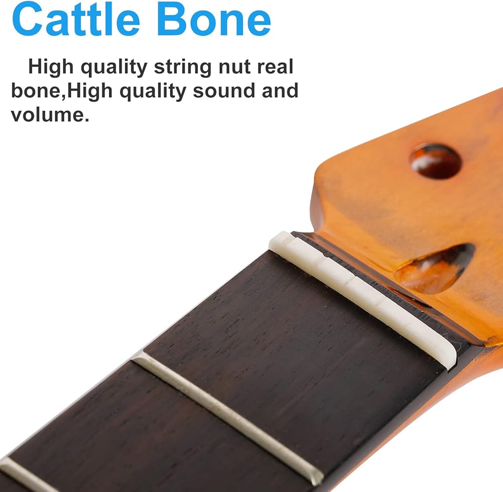22 Fret ST رقبة جيتار كهربائي من خشب القيقب الكندي، لوحة أصابع من خشب الورد، بني لامع، نصف قطر لوحة الفريتس 14 بوصة، صامولة عظمية