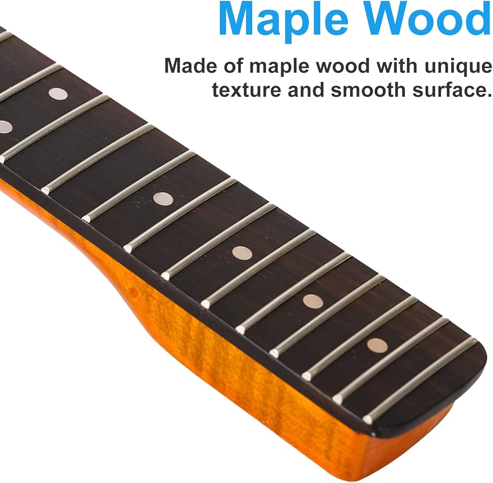 - خشب القيقب الكندي: أعناق الجيتار الكهربائي المصنوعة من خشب القيقب الكندي متينة للغاية وستستمر لفترة طويلة.