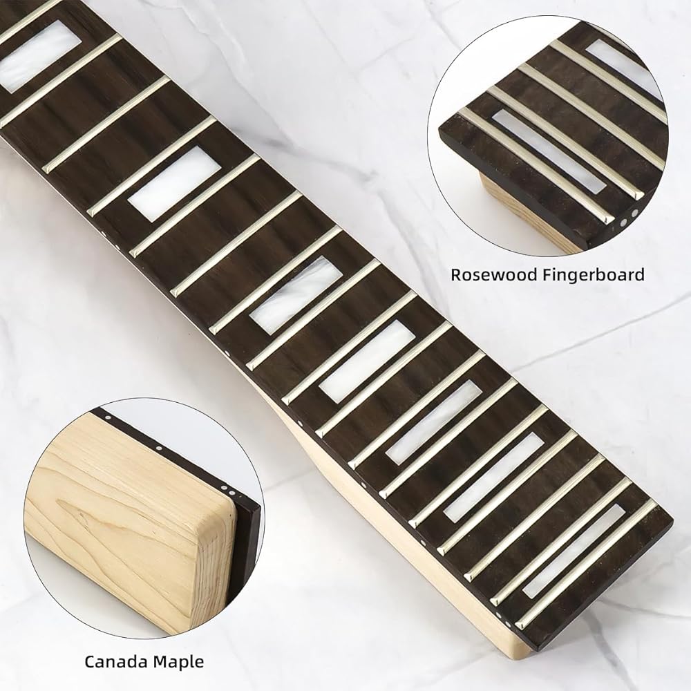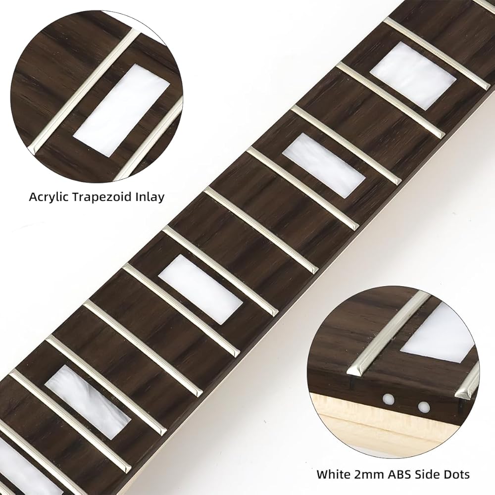 استبدال رقبة الجيتار الكهربائي 24 فريت 25.5 بوصة لوحة أصابع من خشب القيقب وخشب الورد مع مسمار ترصيع شبه منحرف على