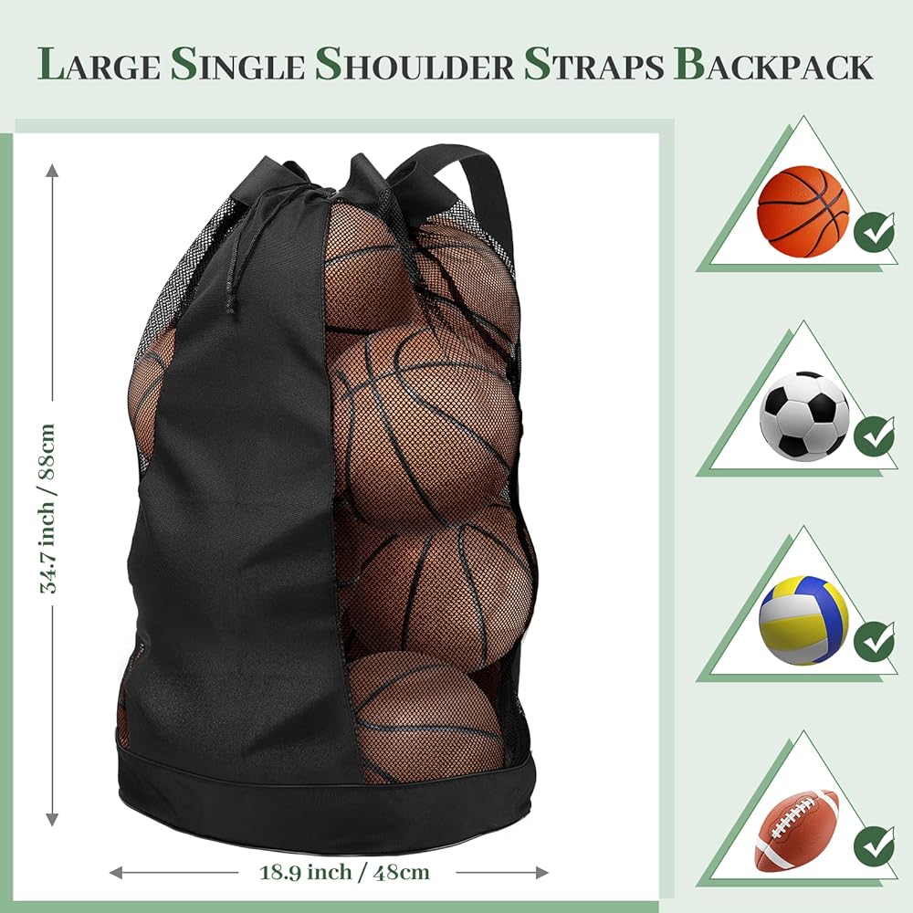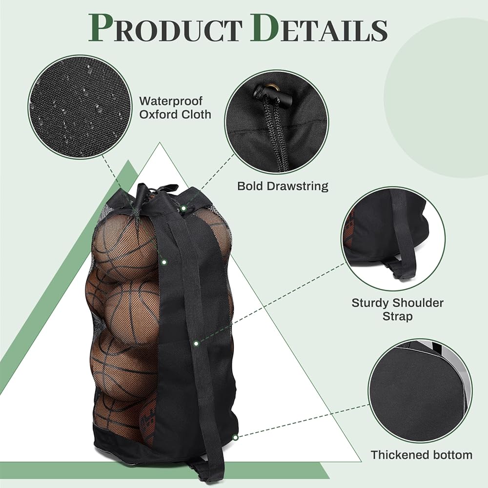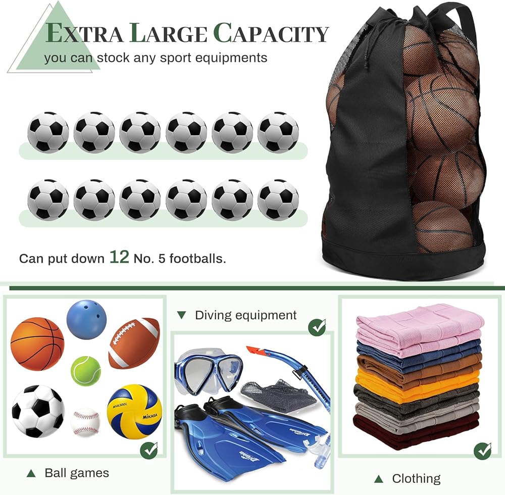 【Super Large Capacity】Large mesh equipment bag for balls has a very large capacity and can hold 12 size 5 balls (excluding balls). The mesh soccer ball bag can hold team jerseys, practice balls, even water sports gear and laundry. It's the one gear bag you need for all your sports and outdoor activities.