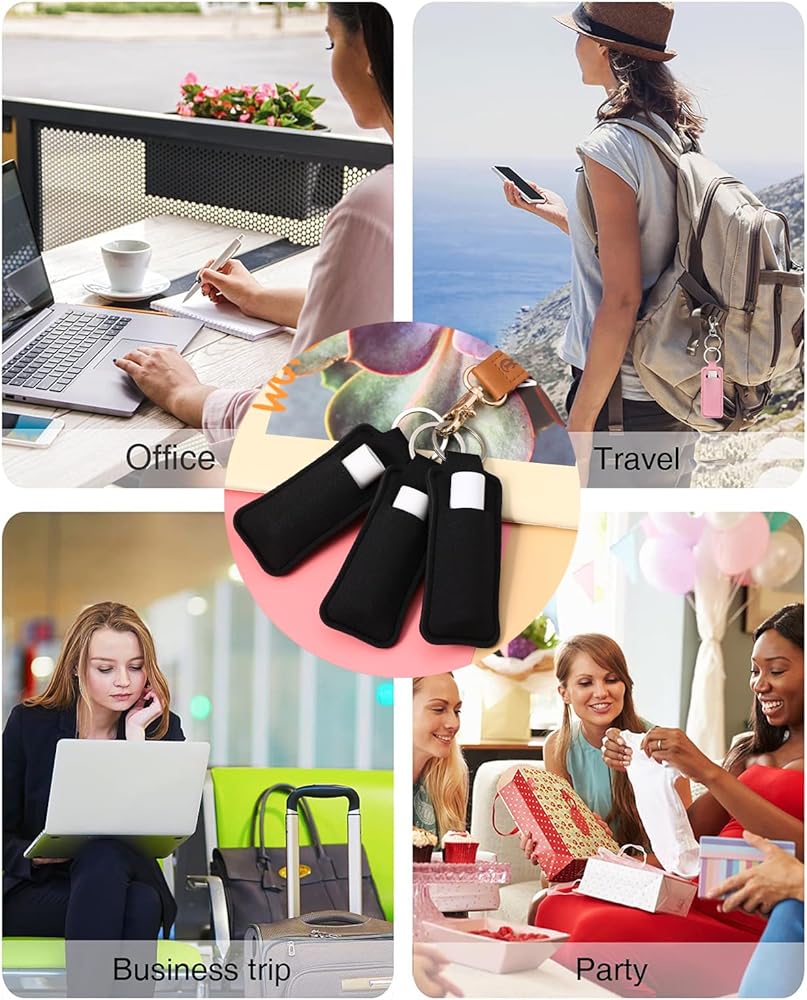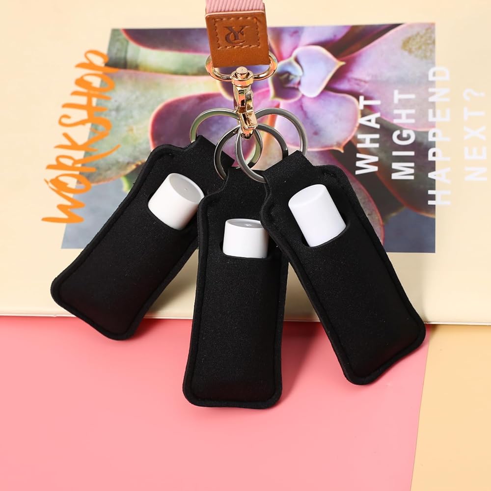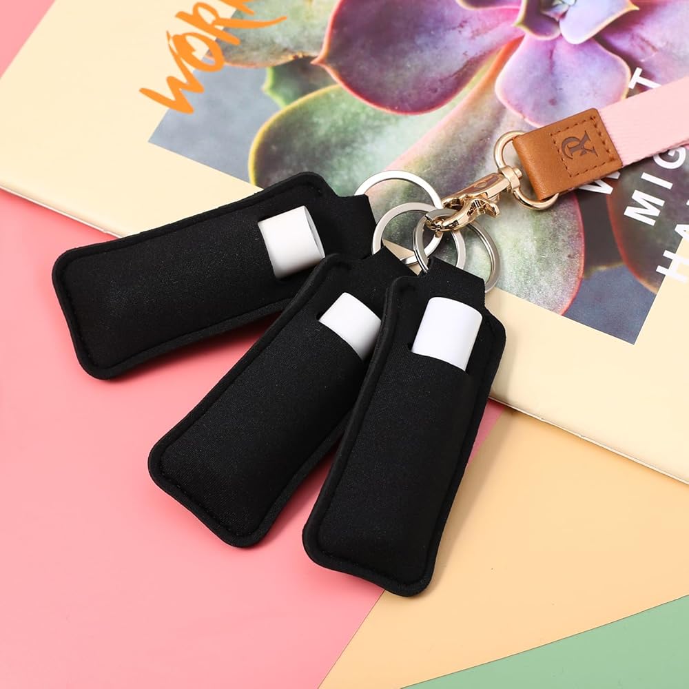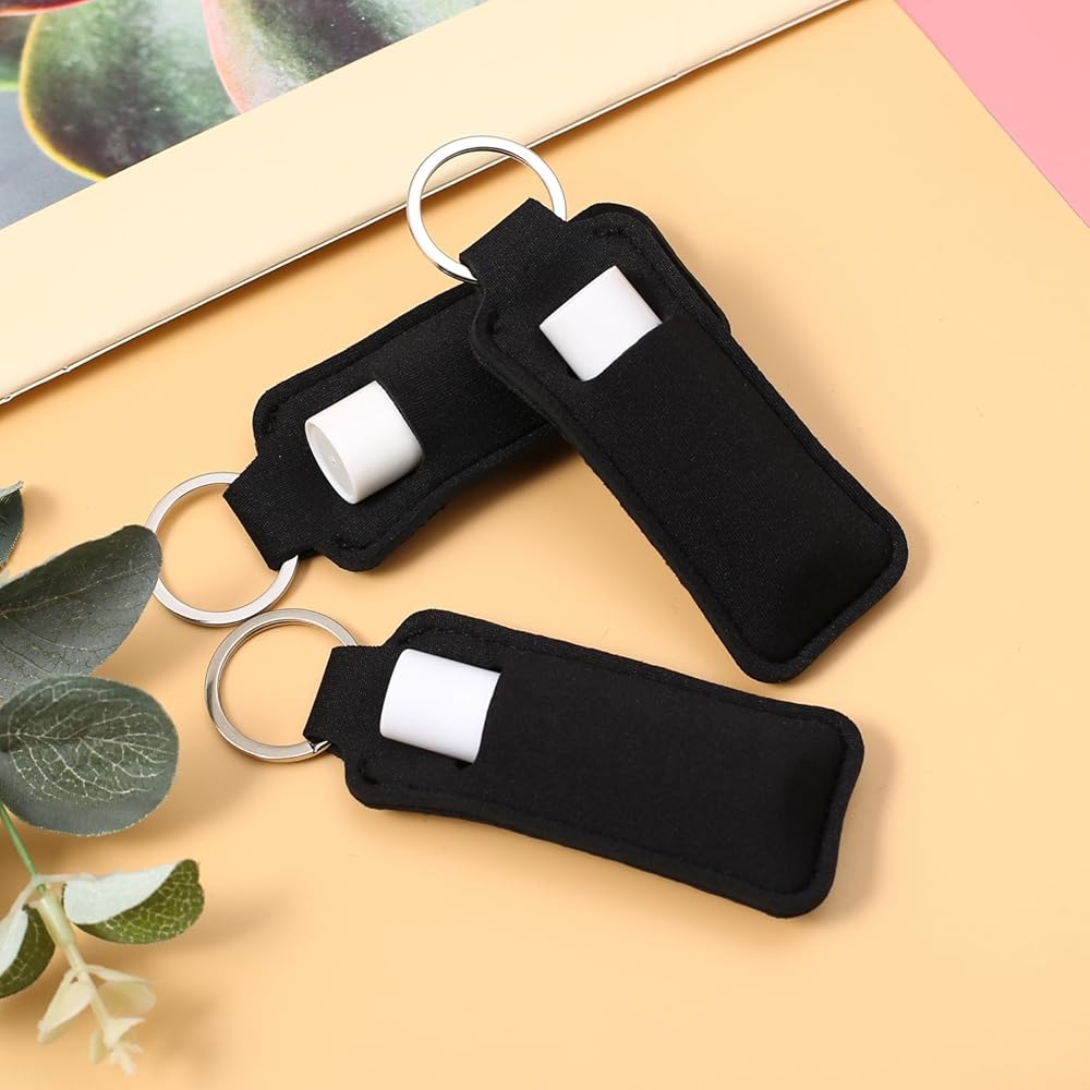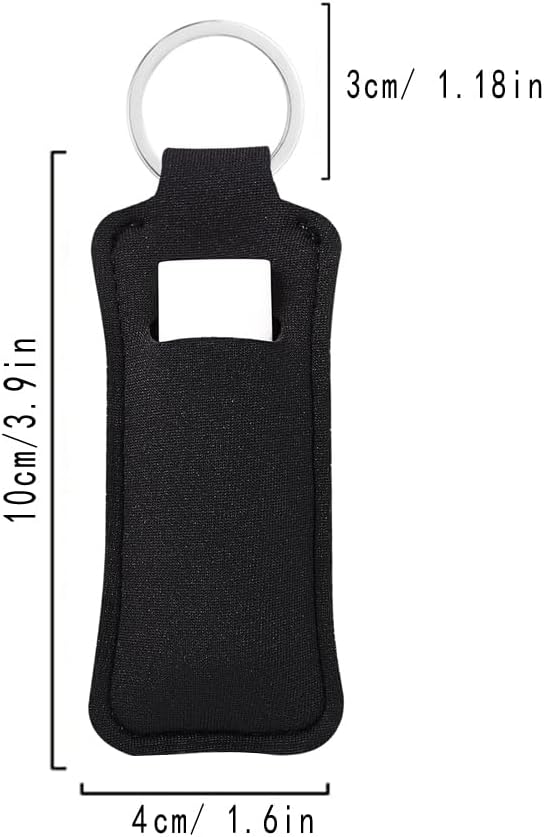 SIZE: height 10cm(without metal ring), width 4cm; Chapstick Holder Keychain made of elastic fabric can be adapted to most lip balms and lipsticks.