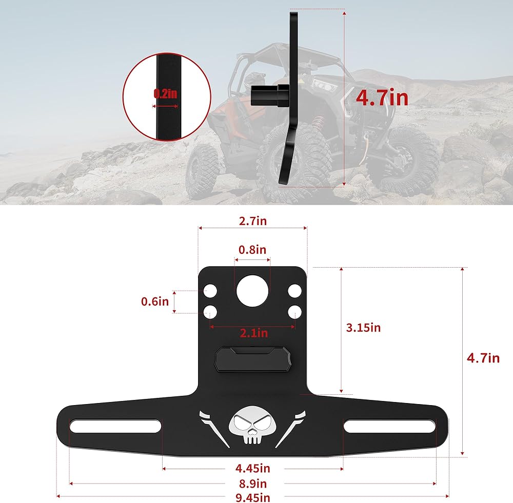 【الإعداد】حامل لوحة الترخيص هذا مناسب لـ utv، وatv، والمقطورة، والدراجات النارية، وRV، والشاحنة، والقارب، وعربة الجولف، وعربة الثلج، وما إلى ذلك. دعامة لوحة الترخيص Esploratori متوافقة مع RZR Ranger General Maverick X3 Commander Defender Outlander Renegade DS SXS و متوافق أيضًا مع موديلات ATV/UTV/RV الأخرى.
