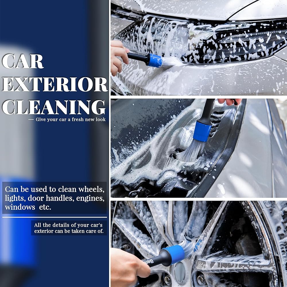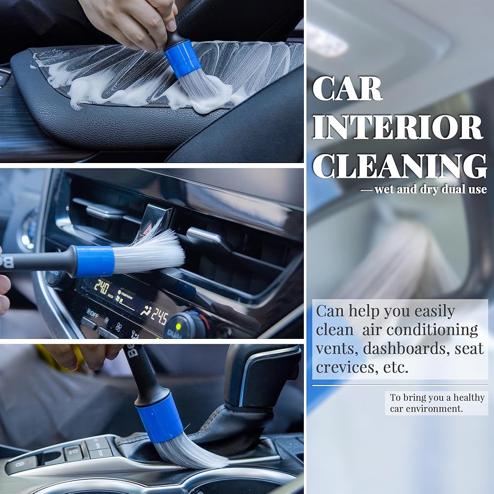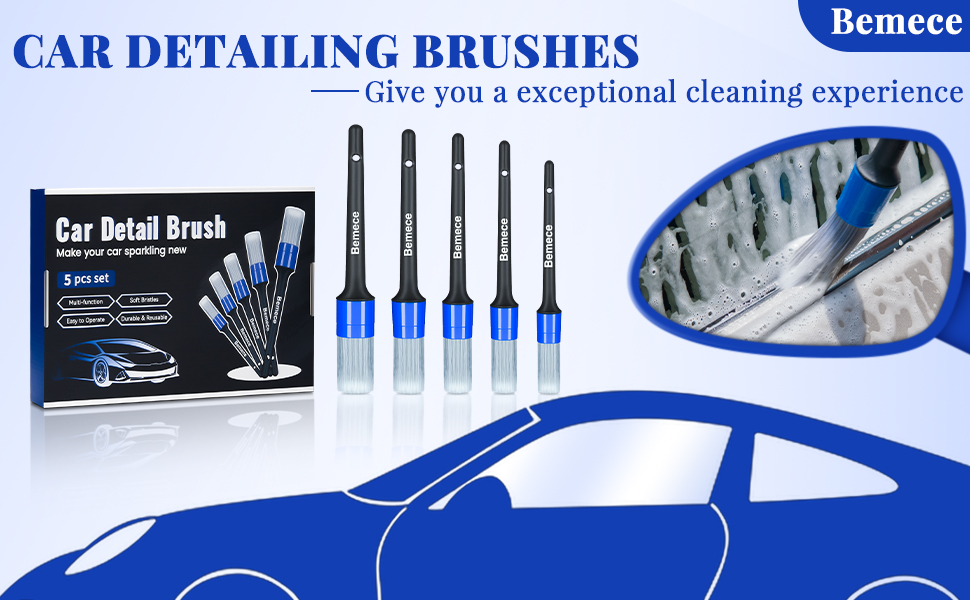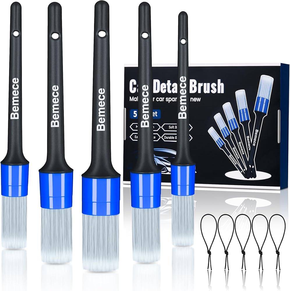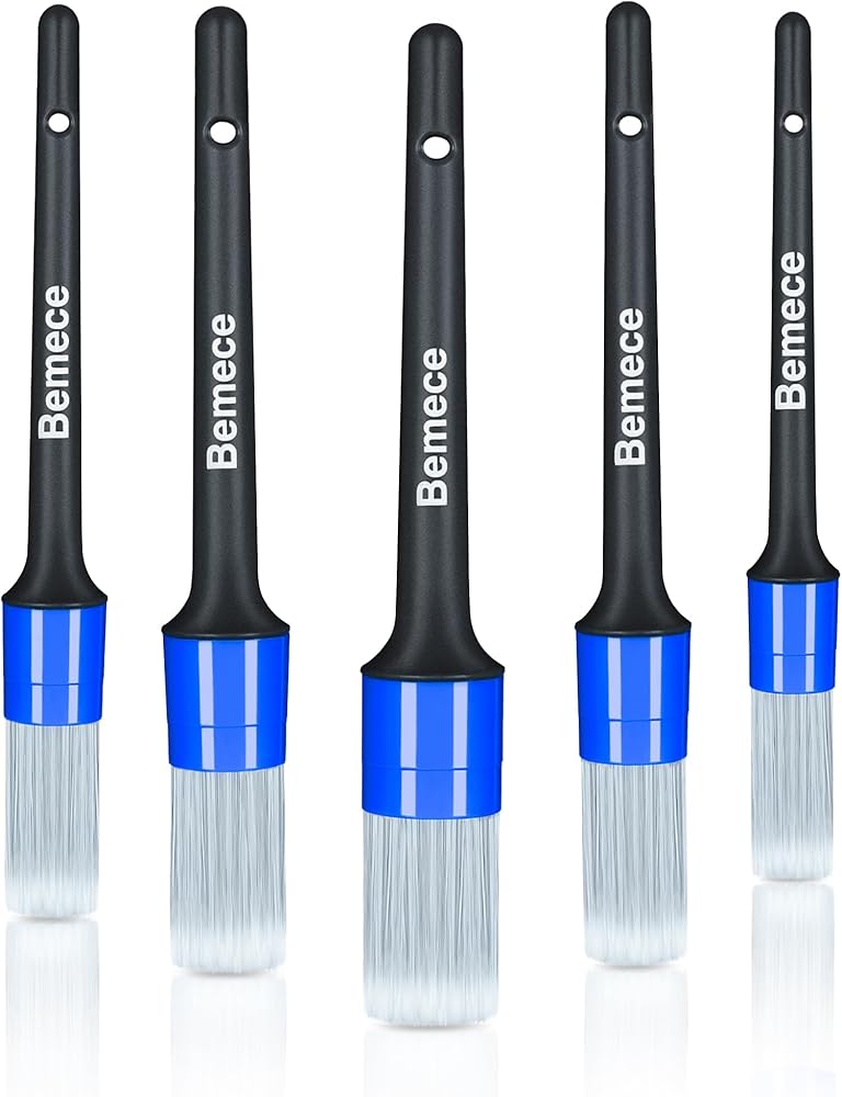 5 قطع من فرش تفصيل السيارة من bemece، 5 قطع من فرش التفاصيل بأحجام مختلفة، فرشاة تنظيف السيارة لتنظيف الجزء الخارجي والداخلي والعجلات والشعارات وخليج المحرك والجلد وفتحات الهواء