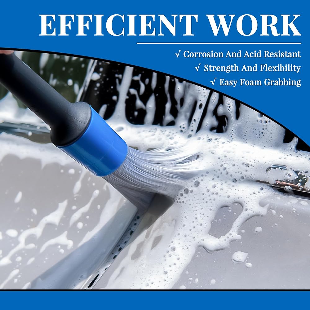 2. ناعمة&: الشعيرات مصنوعة من مزيج من شعر الخنزير والألياف الصناعية، وكلاهما ناعم، ولن تضر الأسطح مثل المقاعد الجلدية أو طلاء السيارة؛ شعيرات طويلة كثيفة ومرنة يمكنها تنظيف صواميل العجلات بعمق.