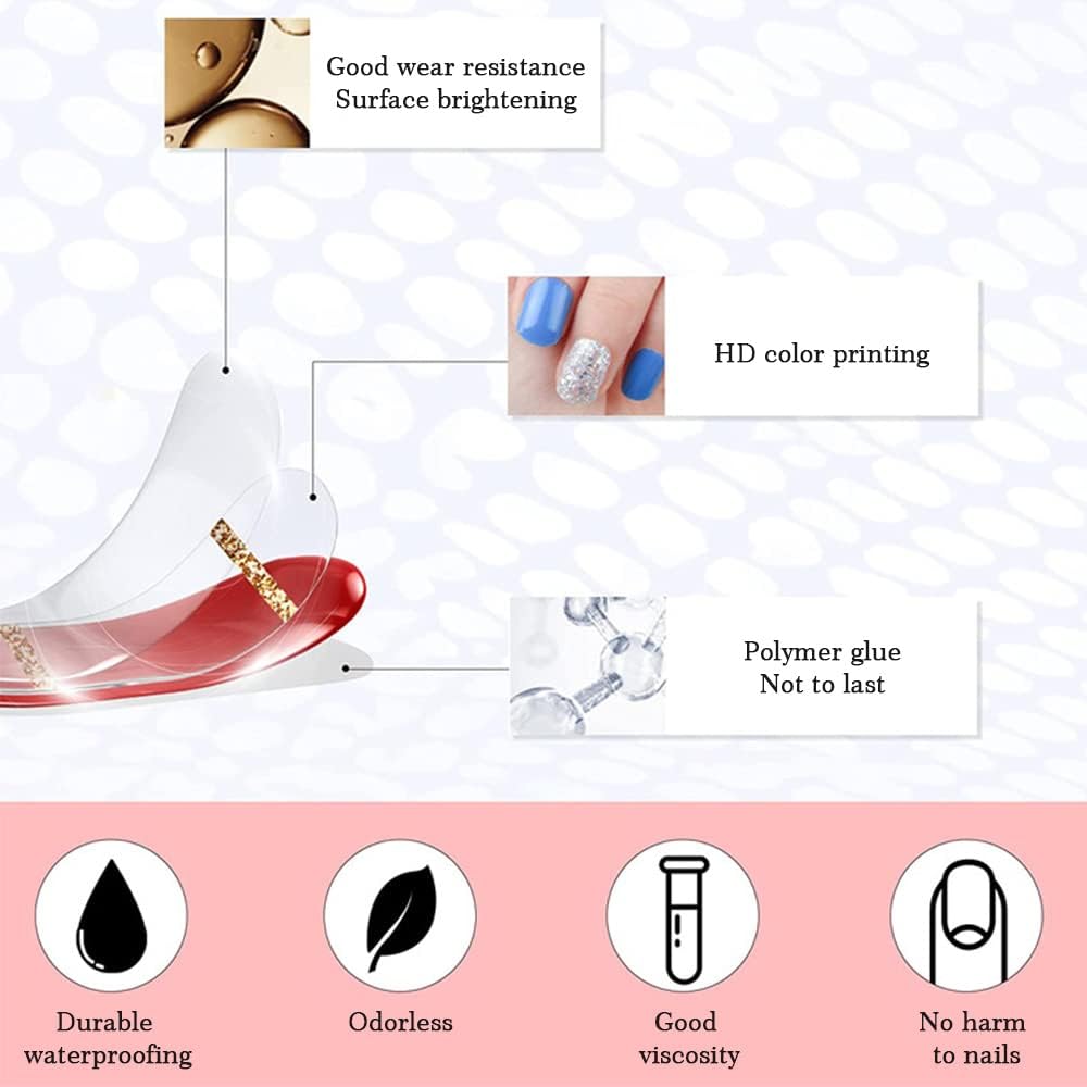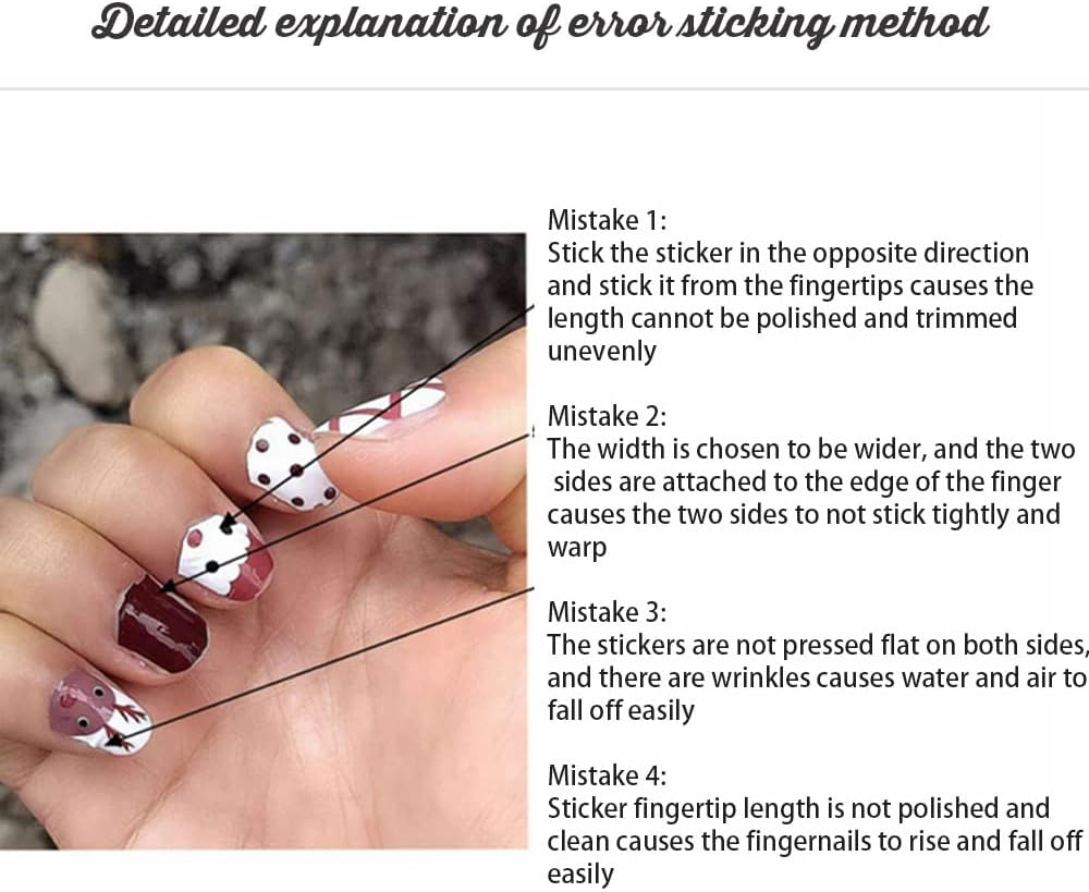 √ متينة ومقاومة للماء: ملصقات الأظافر مقاومة للماء، لذلك لا داعي للقلق بشأن سقوطها عند ملامستها للماء. ملاحظة: المقاس أصغر قليلاً من الظفر، والحافة متصلة بشكل وثيق بالأظافر لمنع السقوط.