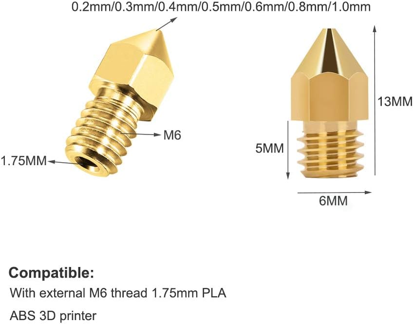 5 x 0.6mm 3D Printer Nozzles