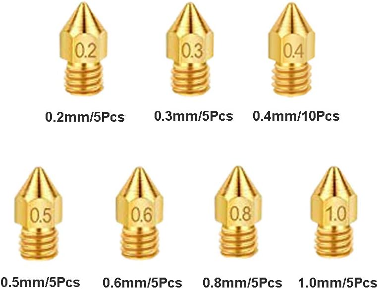 40 Pcs IRCHLYN 0.2mm 0.3mm 0.4mm 0.5mm 0.6mm 0.8mm 1.0mm 3D Printer Nozzles