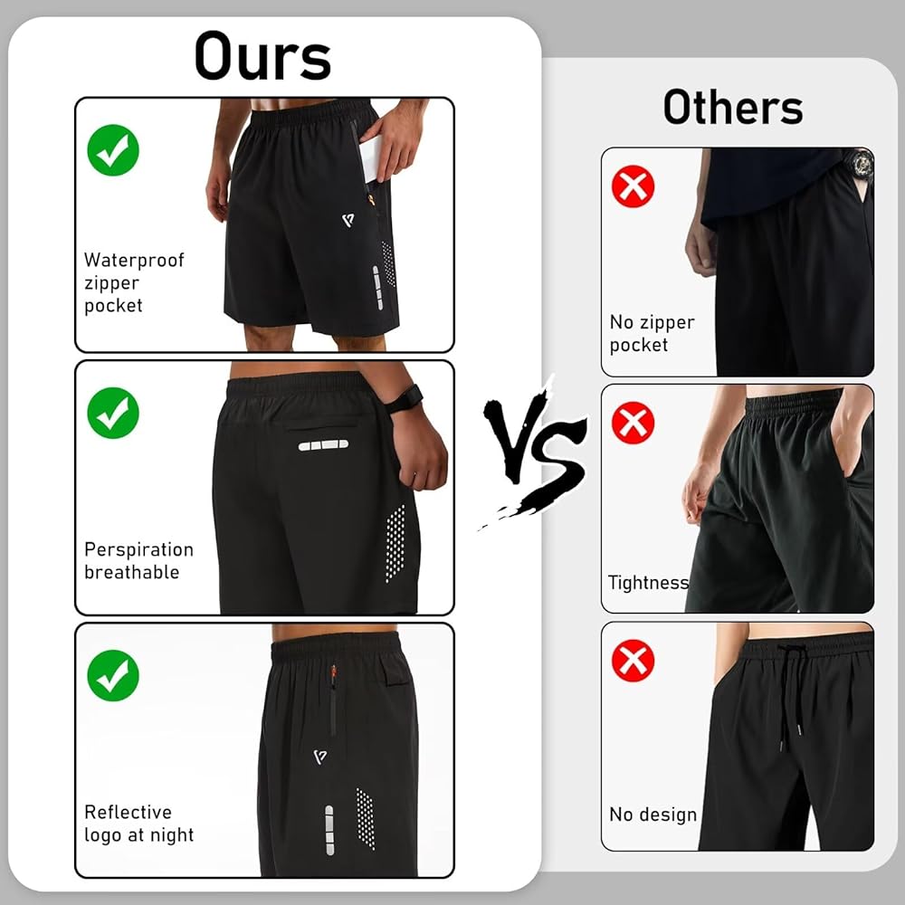 3 جيوب بسحاب مقاومة للماء: تم تصميم شورت الصالة الرياضية الرجالي بطول 17.78 سم مع جيوب عميقة بسحاب مقاومة للماء لضمان امتصاص الرطوبة وسهولة تخزين الضروريات أثناء التمرينات. جيوب الشورت الرجالي ذات الدرزة الداخلية 7 بوصات عميقة بما يكفي لذلك لا داعي للقلق بشأن فقدان هاتفك ومفاتيحك وبطاقاتك أثناء ممارسة التمارين.
