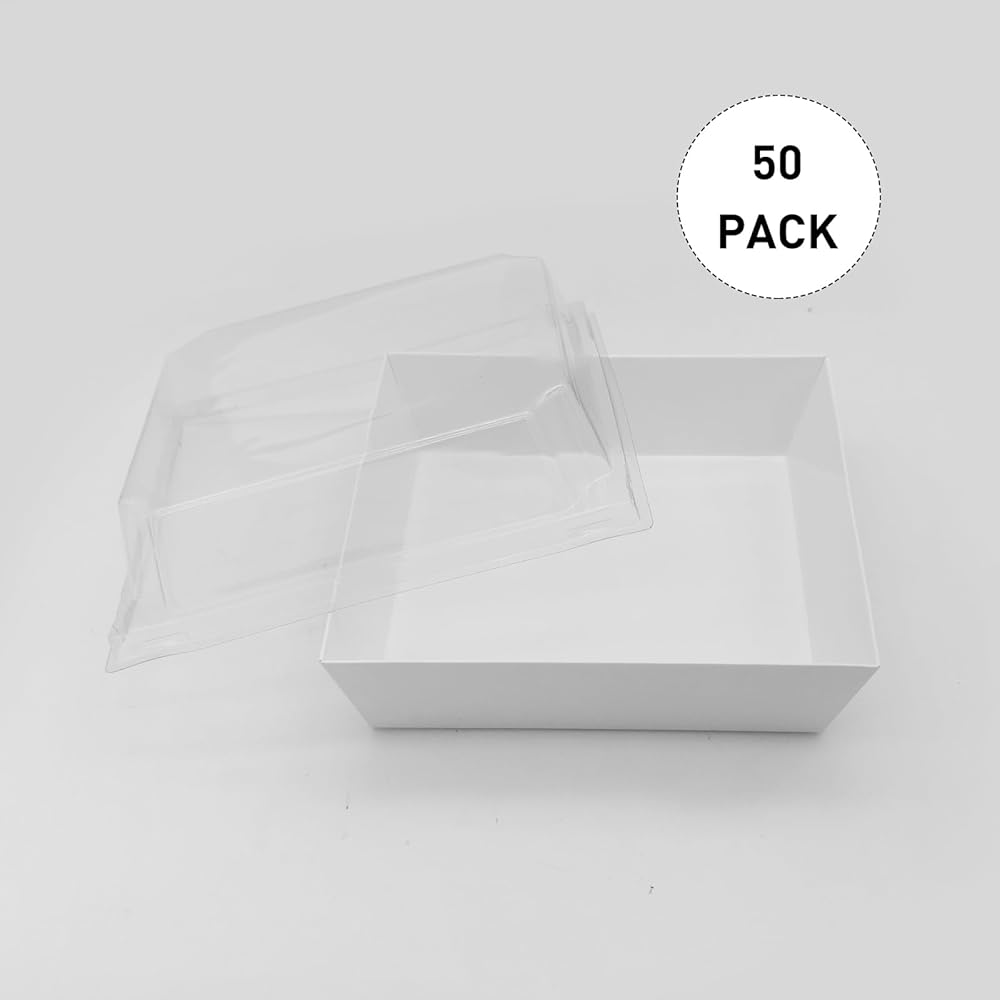 🍩مجموعة صناديق الحلوى الصغيرة: احصل على 50 صندوق كيك (حجم كل صندوق 2.4*4*4 بوصة). يمكن للكمية الوفيرة أن تلبي احتياجاتك للاستخدام اليومي والاستبدال بكفاءة. تتكون كل قطعة من غطاء شفاف وقاعدة ورقية وردية اللون.
