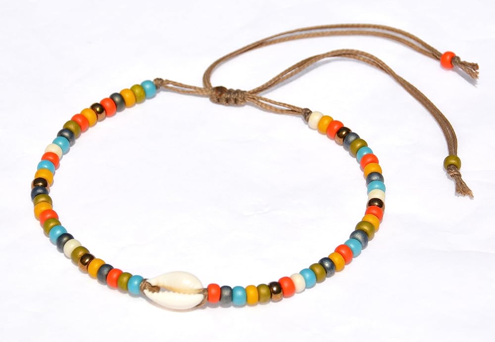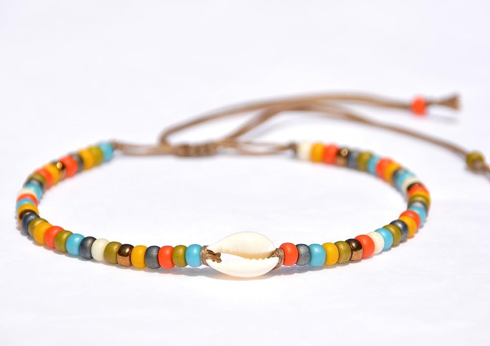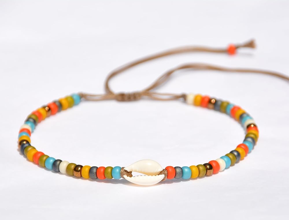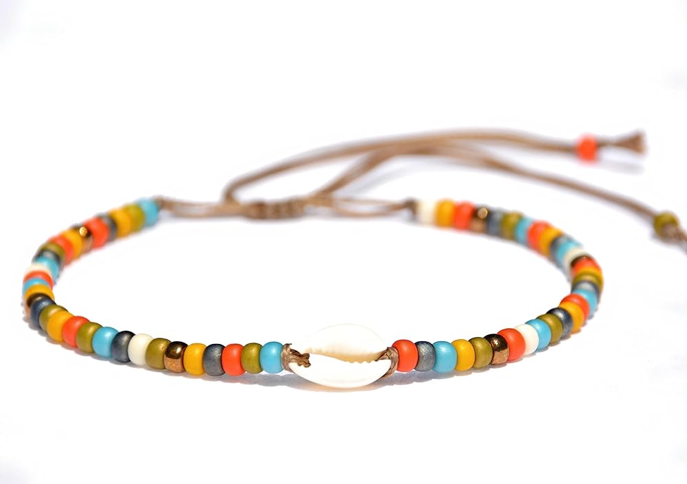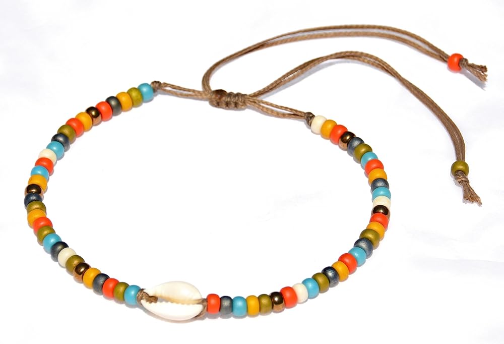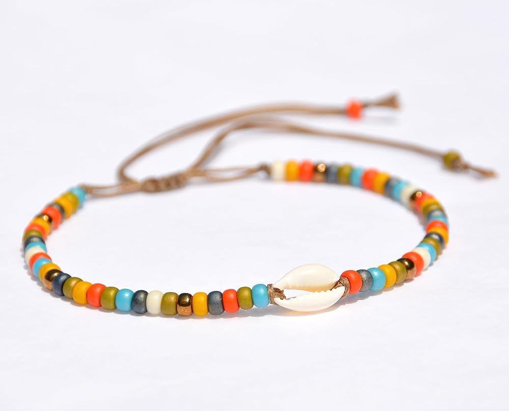خلخال على شكل صدفة للنساء، سوار كاحل بوهيمي بوهيمي مقاوم للماء مطرز قابل للتعديل، خلخال من الخرز الملون على شكل صدف كاوري طبيعي، مجوهرات للقدم على طراز هاواي لصيف الشاطئ، مصنوعة يدويًا من قبل القبائل