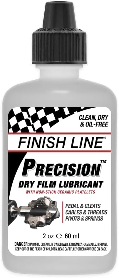 Clipless pedals require regular maintenance for optimum performance and long component life. Finish Line Pedal & Cleat Lubricant sprays on to fully and evenly coat all frictional surfaces and is engineered to ensure fast engagements and smooth releases every time. Thanks to a 100% dry-to-the-touch micro-thin coating, there is no oily, greasy film or unwanted stain when you walk around in your shoes.