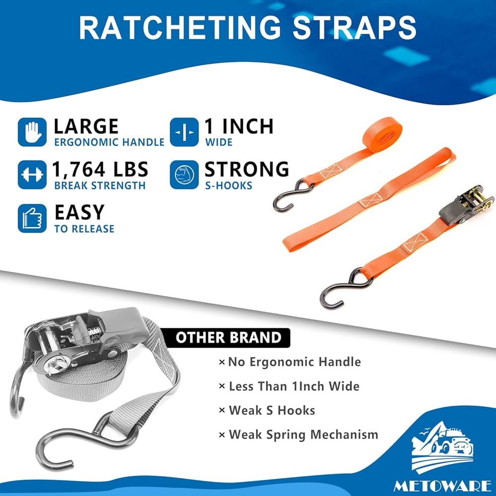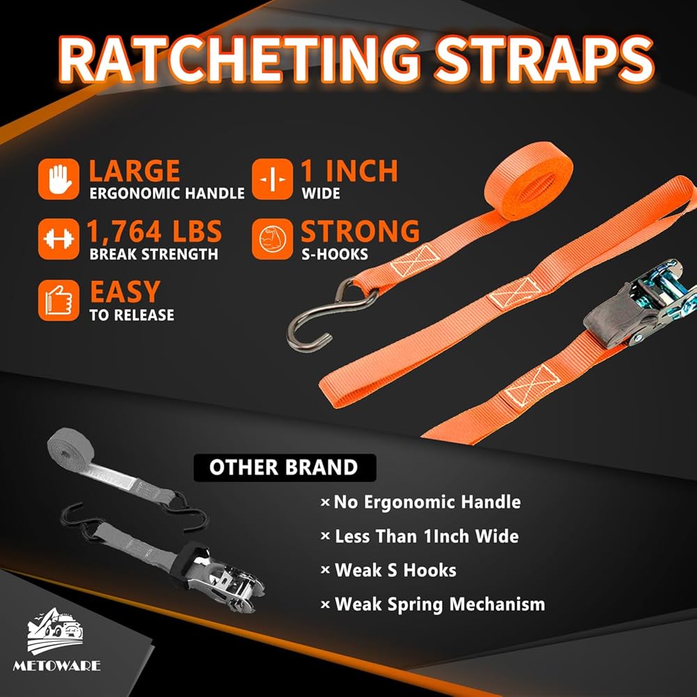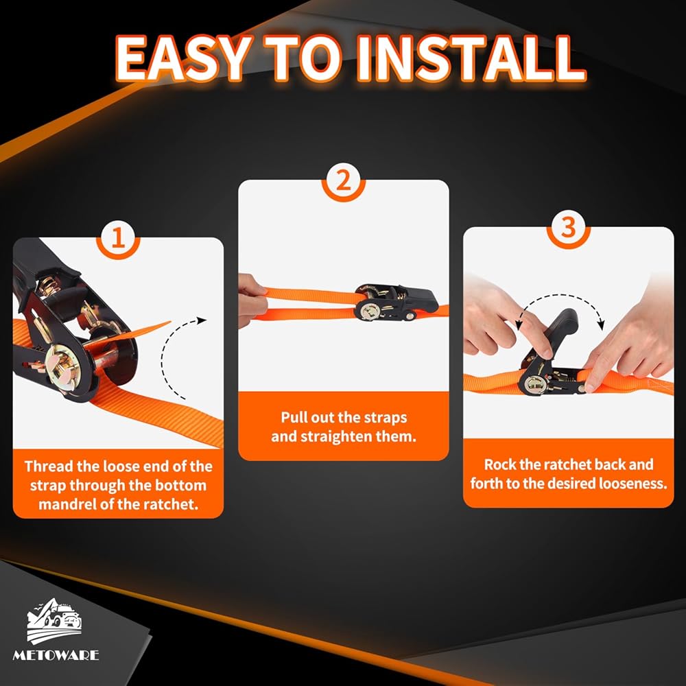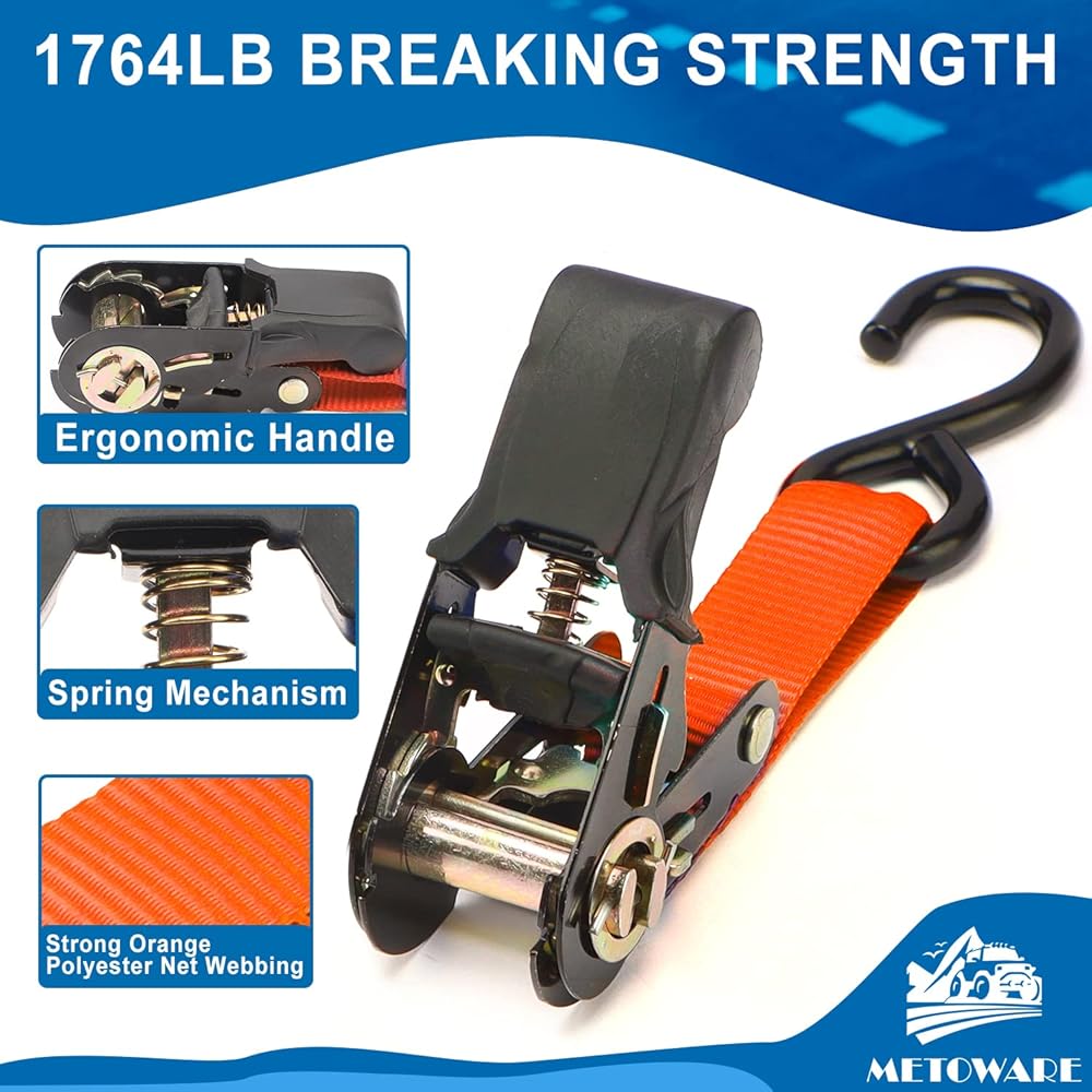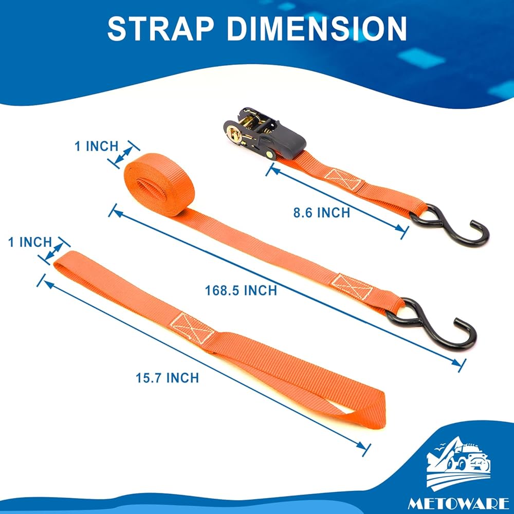 • قوة فائقة - حزام السقاطة مقاس 2.54 سم مصنوع من نسيج البوليستر المتين مع نمط غرز قوي يمكن أن يوفر قوة شد ممتازة تصل إلى 1764 كجم. مع 4 آليات سقاطة شديدة التحمل، و4 خطافات عميقة على شكل حرف S وحزام لضمان سلامة بضائعك أثناء النقل