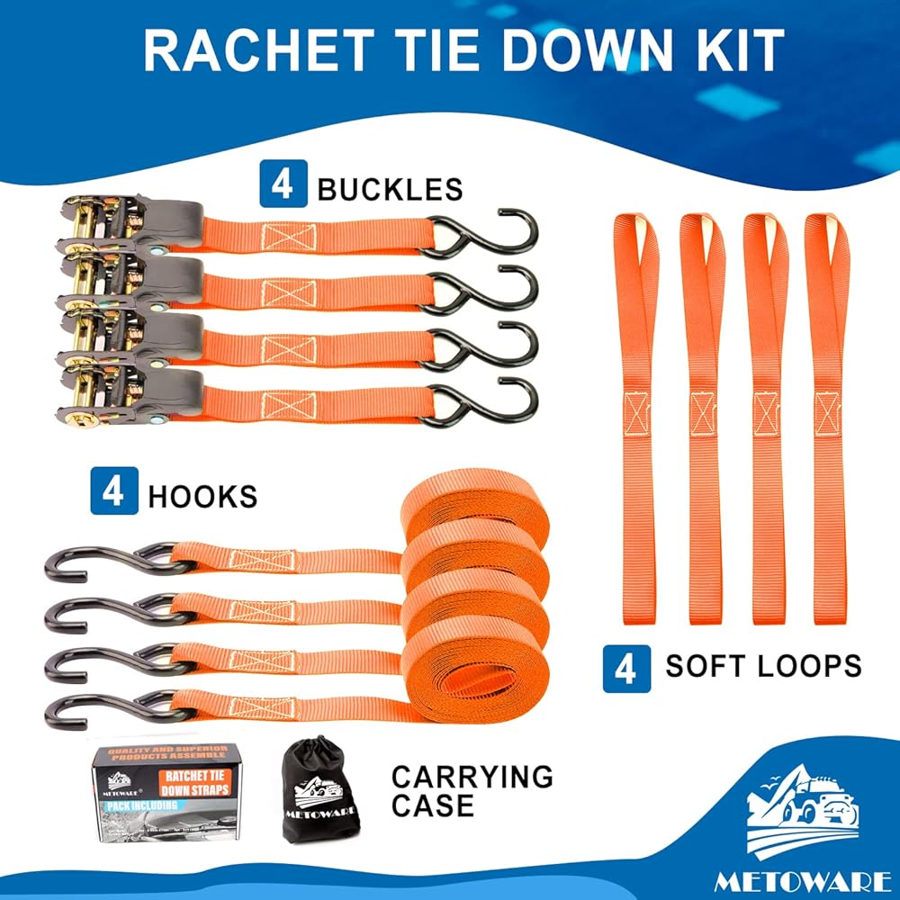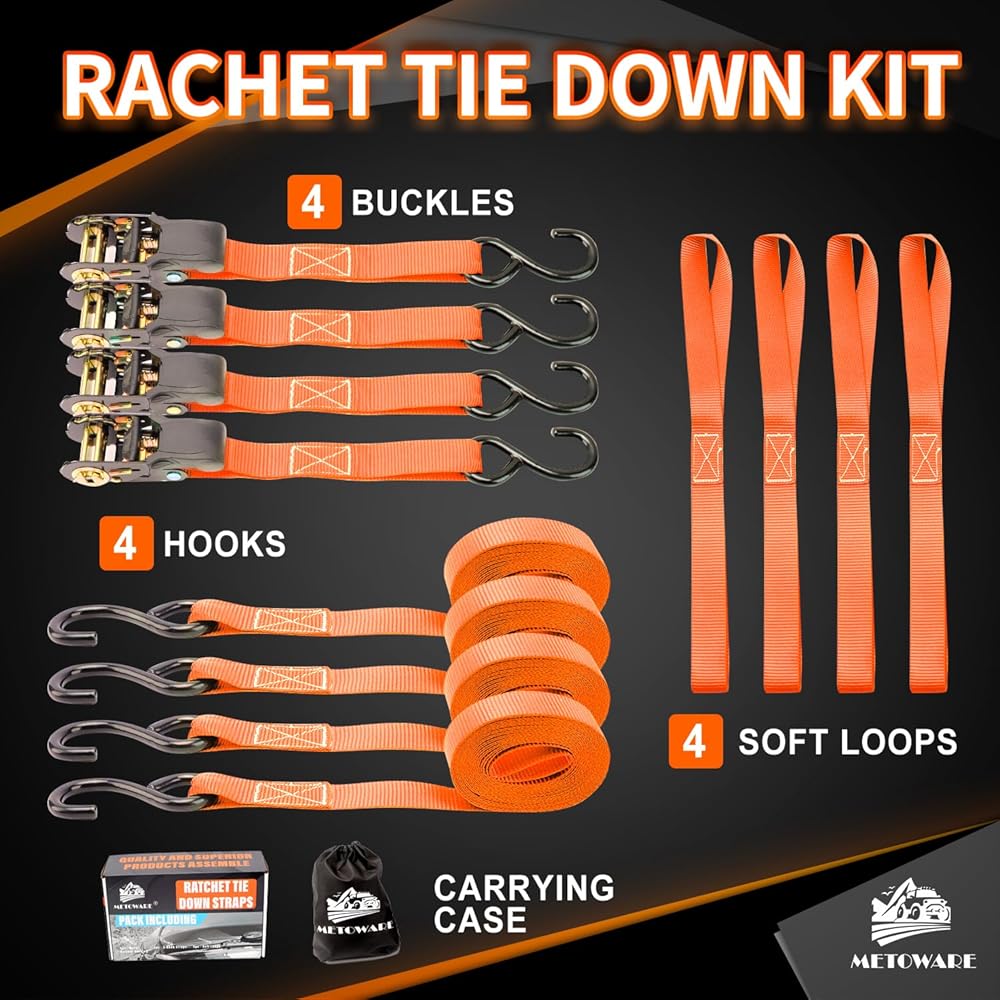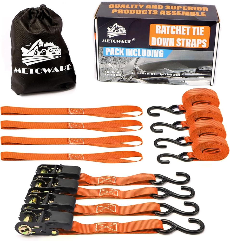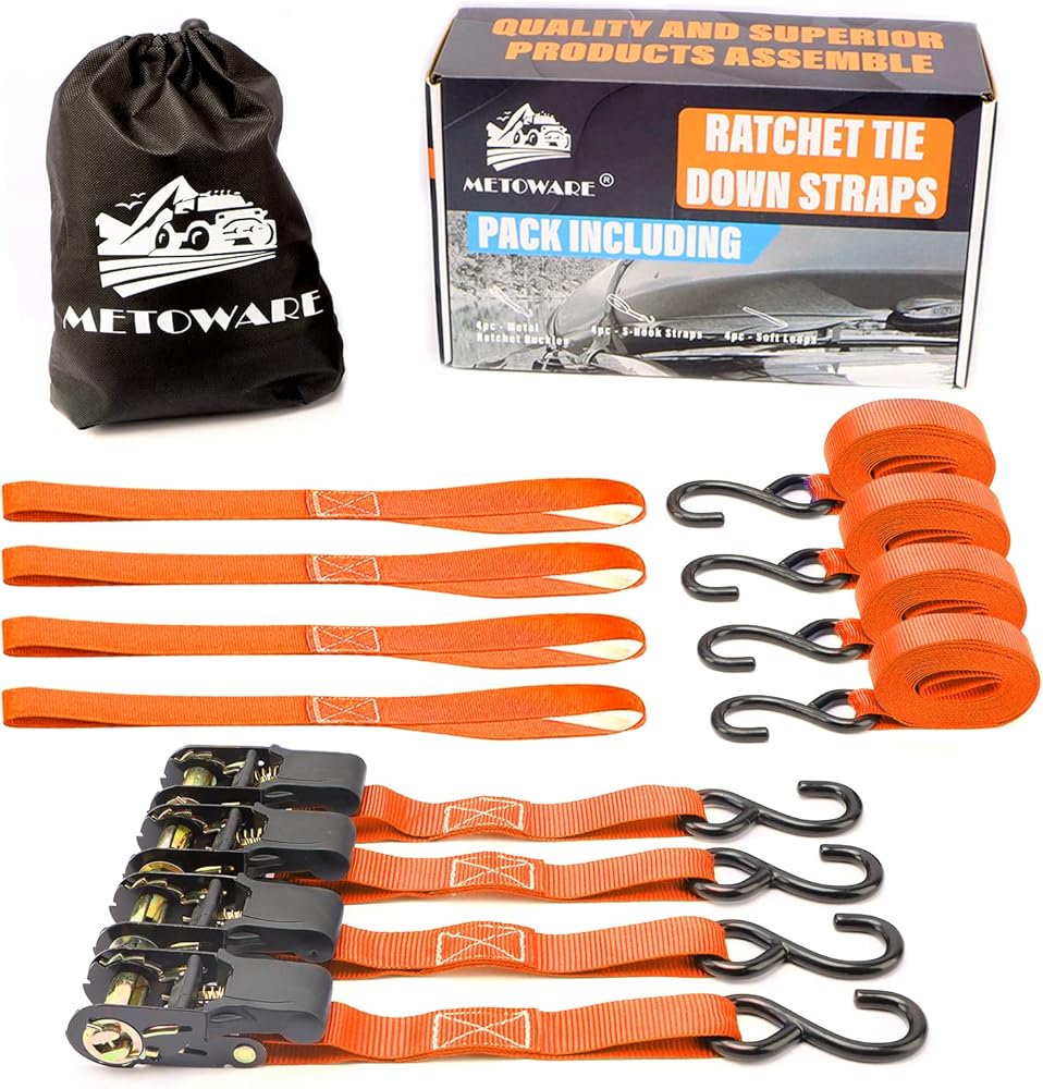 • مجموعة أشرطة السقاطة - تتضمن مجموعة أشرطة السقاطة من METOWARE 4 أبازيم معدنية بسقاطة مع مقابض مطاطية، و4 أشرطة حلقات ناعمة، و4 أشرطة خطاف على شكل حرف S شديدة التحمل. بالإضافة إلى ذلك، هناك حقيبة تخزين سهلة التخزين والحمل