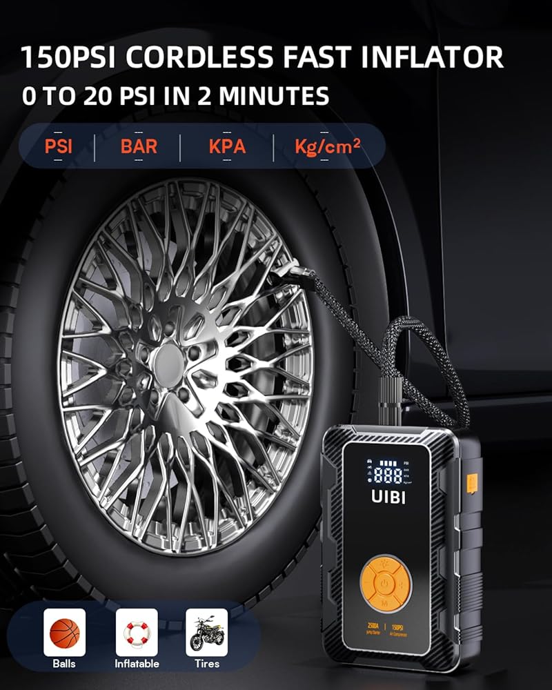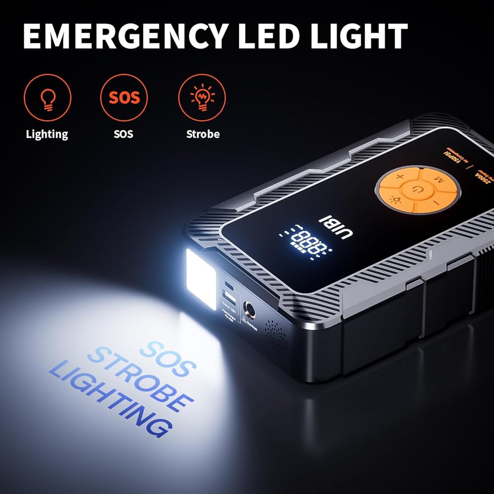 【الضمان ودعم الخدمة مدى الحياة】 نحن نصر على "الجودة أولاً، العميل أولاً". نحن نقدم ضمانًا لمدة 12 شهرًا وخدمة ما بعد البيع صديقة مدى الحياة. إذا كانت لديك أي أسئلة حول مشغلات القفز الخاصة بنا، فلا تتردد في الاتصال بنا 「ما تحصل عليه」: 1 X UIBI Jump Starter مع ضاغط هواء، 1 X كابل توصيل ذكي، 1 X كابل USB-A إلى USB-C، 1 X حقيبة تخزين، 1 X أنبوب مضخة، 3 X فوهة هواء، 1 X دليل المستخدم إنه بلا شك الخيار الأفضل لهدايا أعياد الميلاد وعيد الميلاد ورأس السنة ~