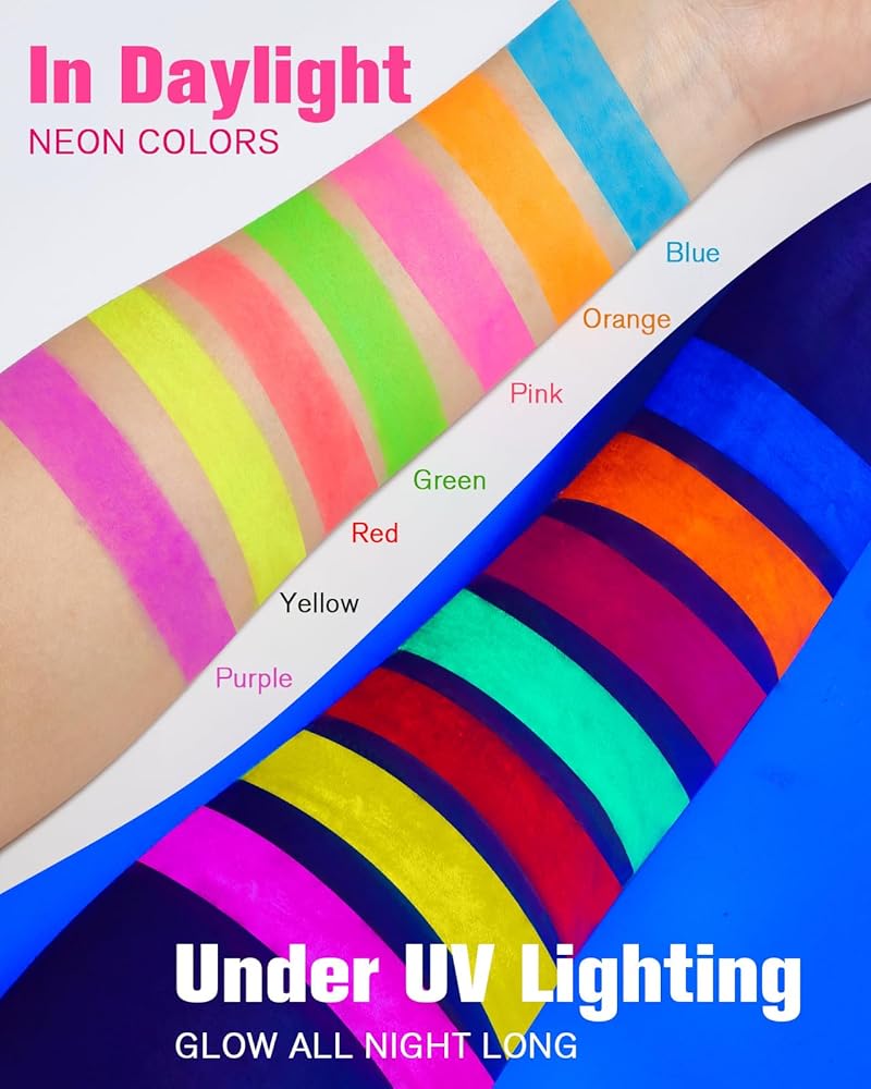 • 🌈هدية مثالية: مجموعة أقلام تلوين الوجه الفلورسنت هذه هي هدية فريدة ومثالية، مثالية لأعياد الميلاد الخفيفة السوداء، والهالوين، والحفلات التنكرية، والحفلات التنكرية، والاحتفالات، وحفلات المكياج مع إضاءة الأشعة فوق البنفسجية.