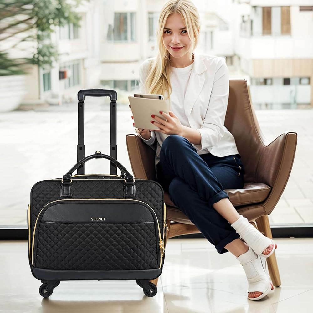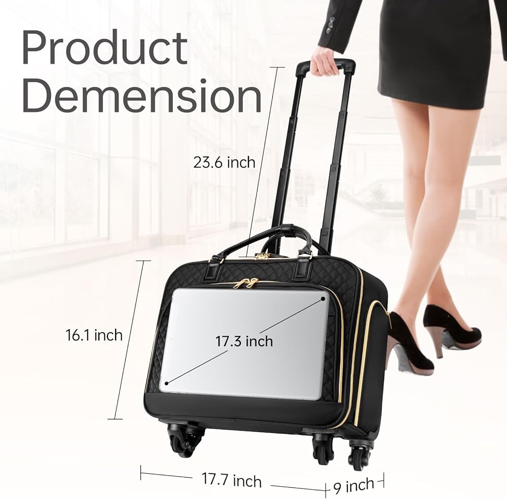 حقيبة كمبيوتر محمول Ytonet Rolling، حقيبة دوارة مقاس 17.3 بوصة للنساء مع 4 عجلات دوارة، حقيبة كمبيوتر دوارة مقاومة للماء مع قفل، حقيبة دوارة للسفر والعمل والمعلم طوال الليل، أسود